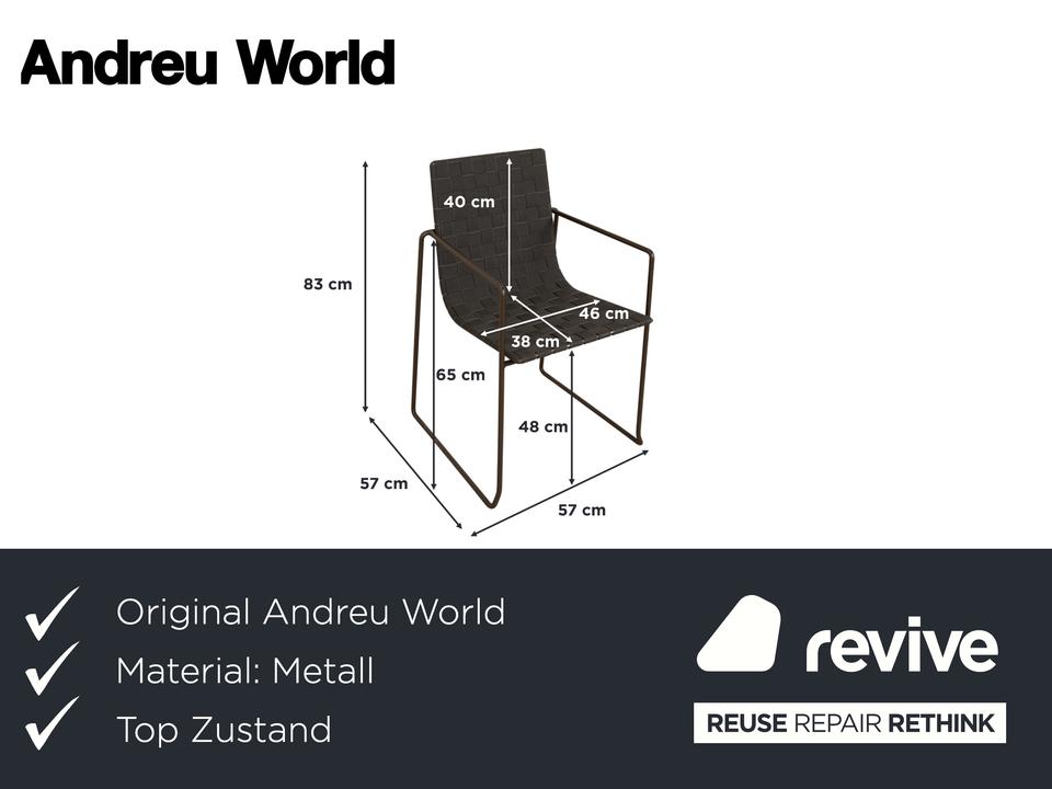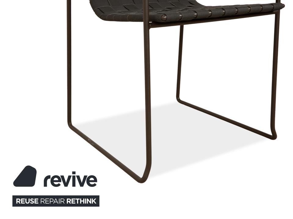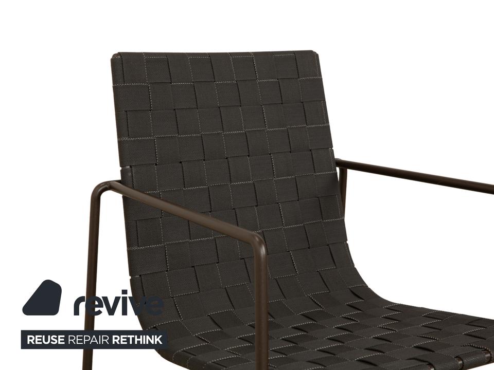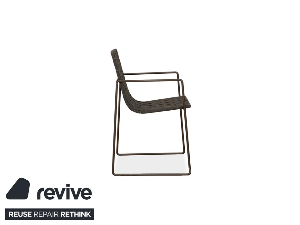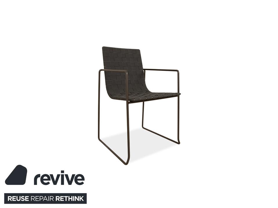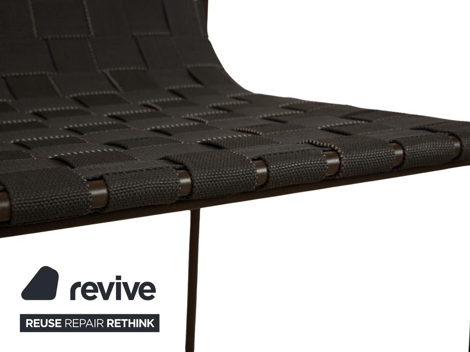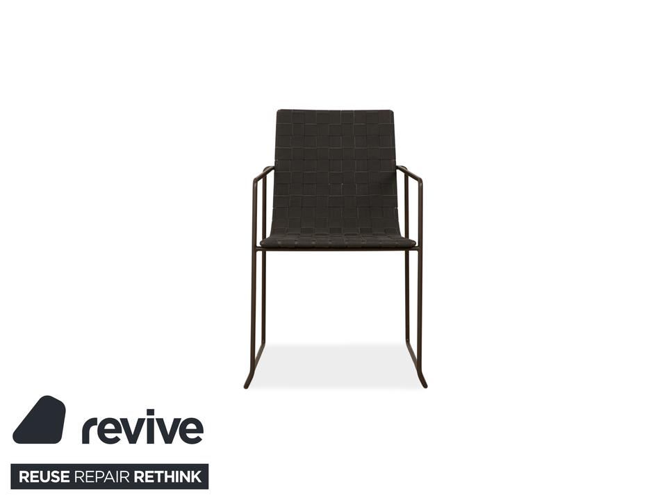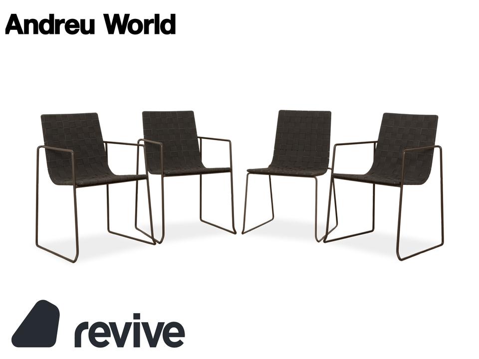 Dieses Set aus vier Andreu World Trenza Stühlen vereint modernes Design mit zeitloser Zurückhaltung. Die Sitz- und Rückenflächen bestehen aus einem hochwertigen, breiten Flechtband, das nicht nur optisch beeindruckt, sondern auch für ein angenehmes Sitzgefühl sorgt. Der Farbton in Anthrazit-Braun wirkt edel und warm zugleich – ideal für moderne Wohn- und Essbereiche, aber auch stilvoll im Office, im Gastronomie-Bereich oder im Design-Home-Office. Das filigrane Metallgestell gibt den Stühlen ihre klare Linie und einen leichten, fast schwebenden Look. Gleichzeitig sorgen die Armlehnen für zusätzlichen Komfort und perfekten Halt, ohne die Leichtigkeit des Designs zu verlieren. Dieses Set kombiniert Komfort, zurückhaltende Eleganz und robuste Qualität – eine harmonische Verbindung aus Design und Funktion, die sich mühelos in jede moderne Einrichtung integriert.