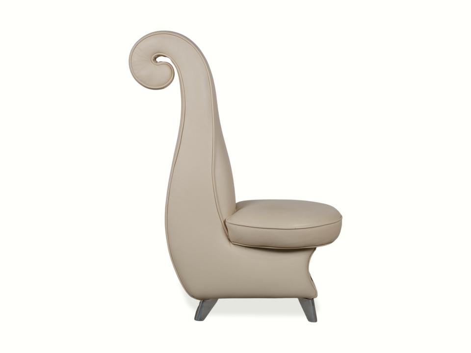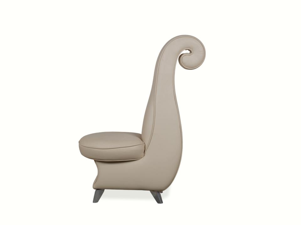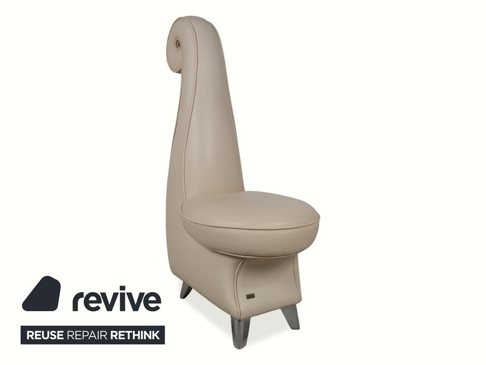 Mit diesem Set aus vier passenden Stühlen der Serie Rocky von Bretz bekommst du die Gelegenheit, dein Esszimmer mit einem echten Design-Statement zu krönen, das man so kein zweites Mal findet. Die Garnitur bricht mit jeder Vorstellung von einem gewöhnlichen Esszimmerstuhl und bringt eine unvergleichlich exzentrische Energie direkt an deinen Tisch. Highlight ist natürlich die markante Rückenlehne, die oben in einer fast schon surrealen Schneckenform ausläuft und diesem Entwurf seinen absolut unverwechselbaren Charakter gibt. Das Design bricht ja ganz bewusst mit gewöhnlichen Formen. Das beige Leder sieht dabei nicht nur echt schick aus, sondern unterstreicht nochmal die besondere Form. Die Kombination aus der opulenten Silhouette und im Kontrast mit den Metallfüßen sorgt dafür, dass diese Gruppe im Raum sofort die Hauptrolle übernimmt.