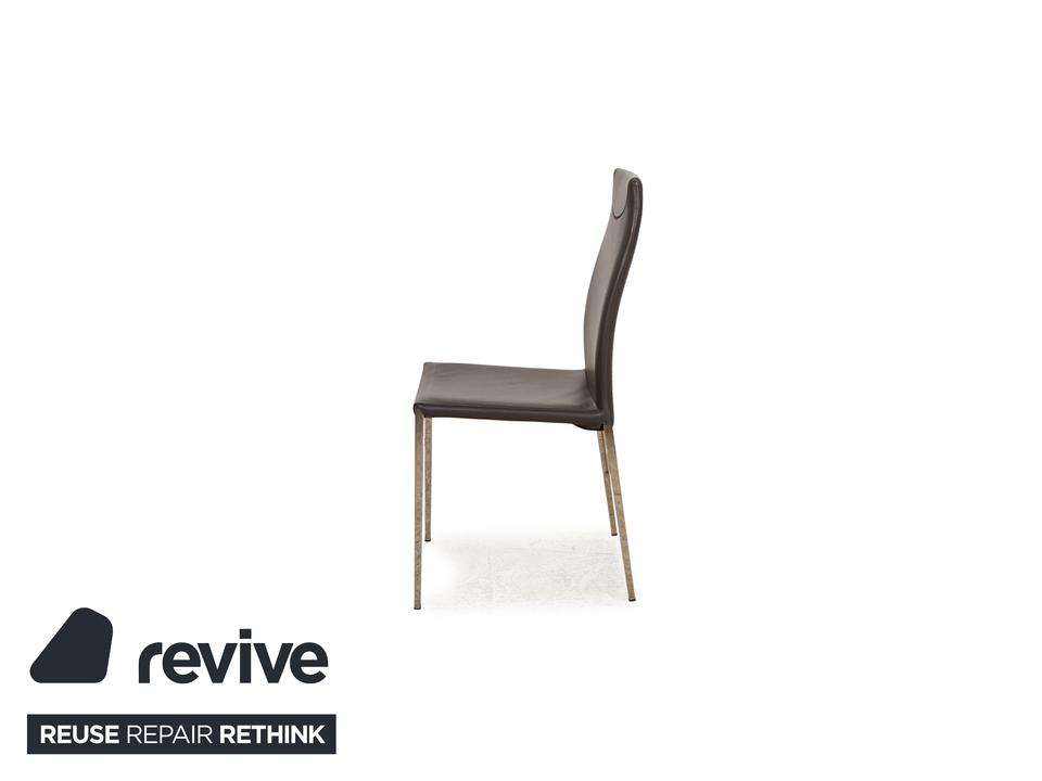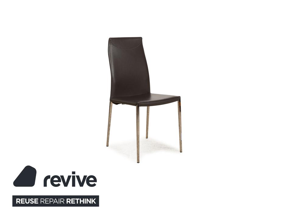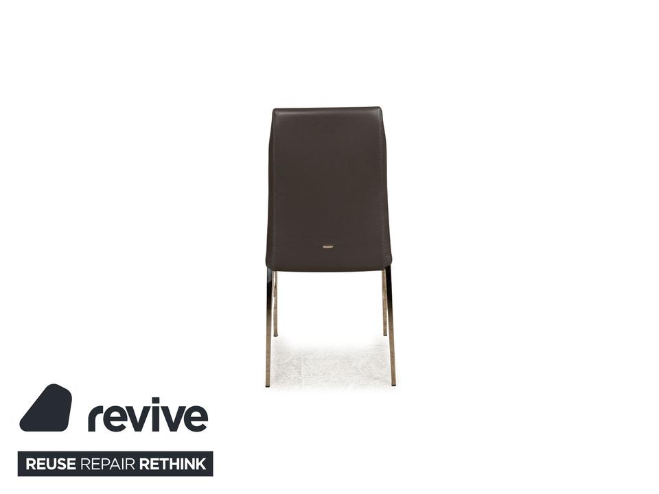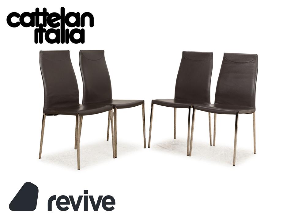 Die Maya Stuhl Garnitur von Cattelan Italia ist mit einem grauen Echtleder bezogen und steht auf Metallfüßen. Das schlichte, zeitlose Design zeichnet sie aus.