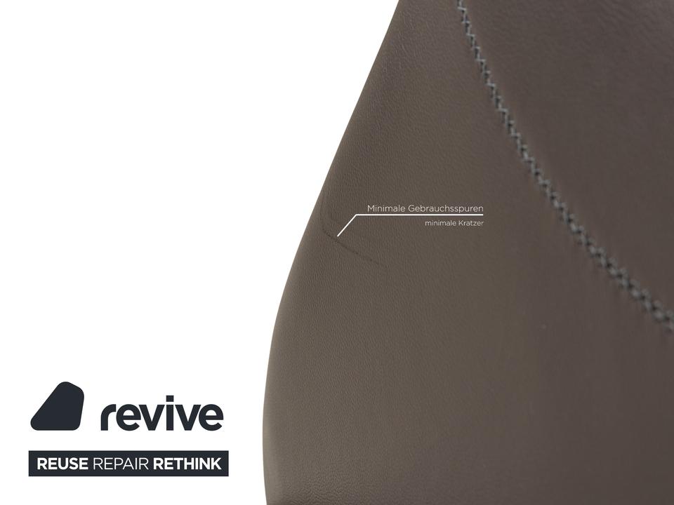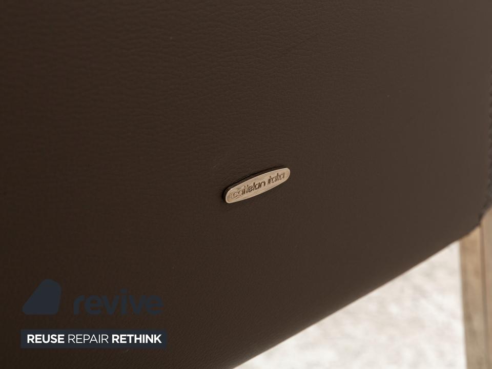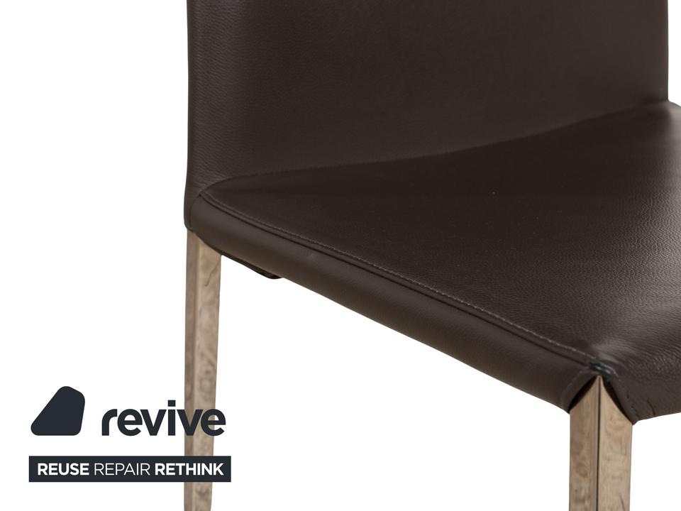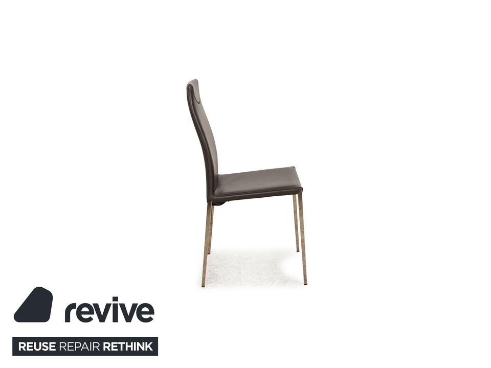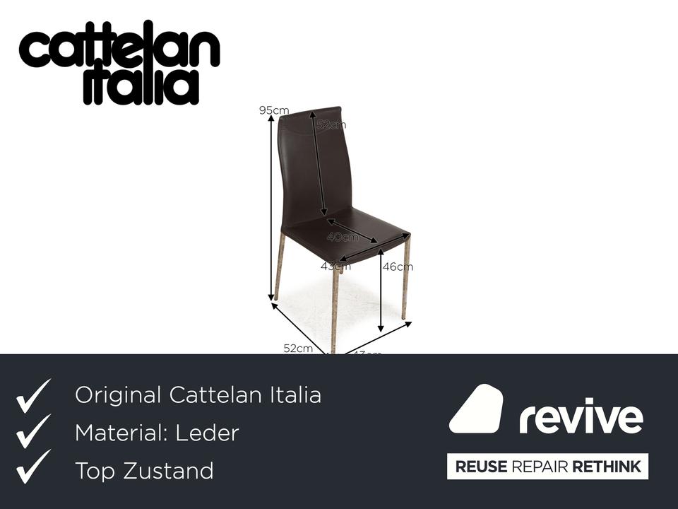 Die Maya Stuhl Garnitur von Cattelan Italia ist mit einem grauen Echtleder bezogen und steht auf Metallfüßen. Das schlichte, zeitlose Design zeichnet sie aus.