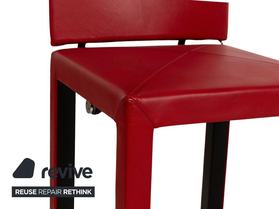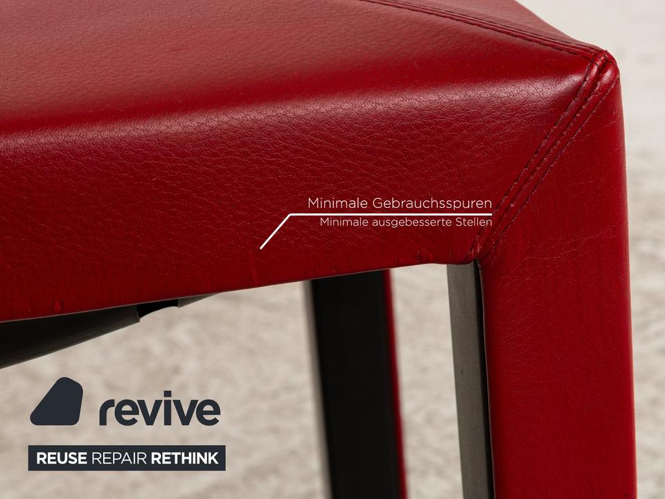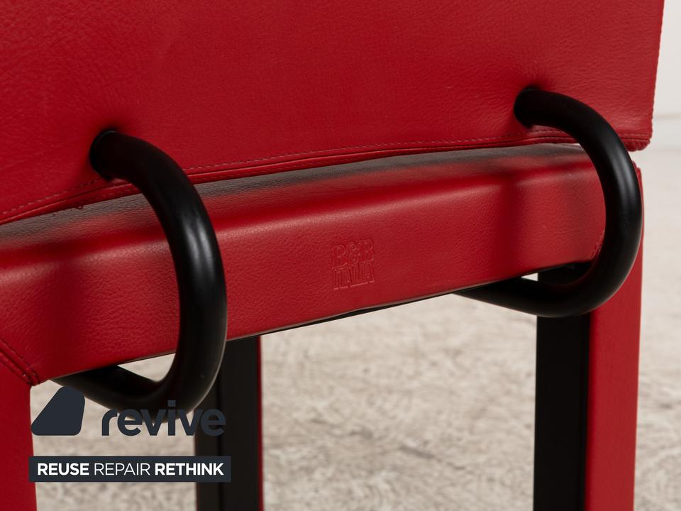 Die Stuhl Garnitur Arcadia von B&B Italia ist mit einem roten Echtleder bezogen und steht auf Holzfüßen. Sie zeichnet sich durch das moderne Design und die schlichte, zeitlose Design aus.
