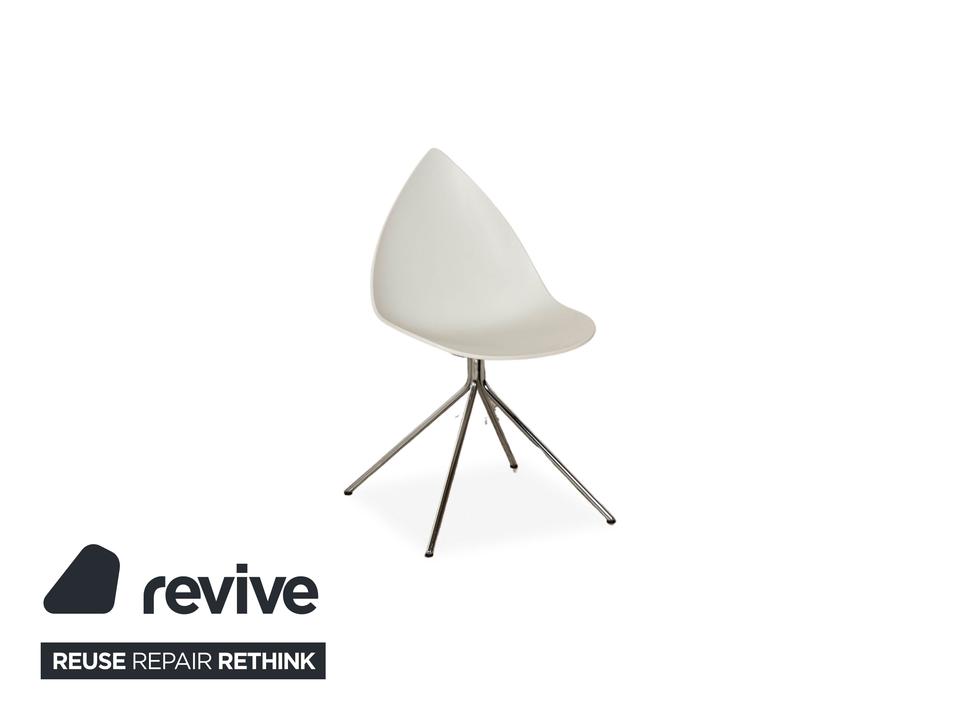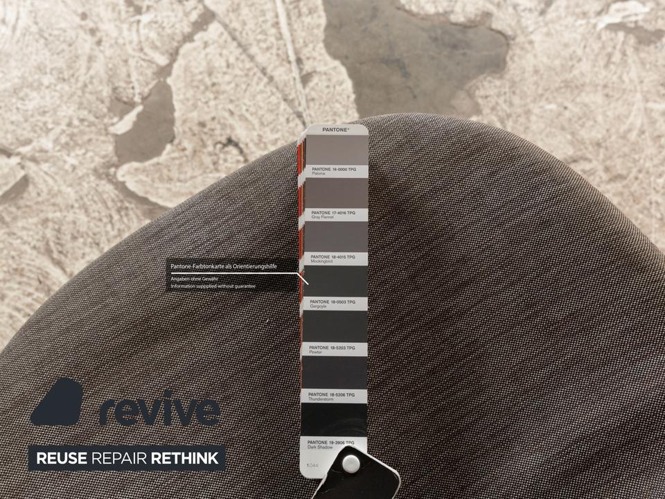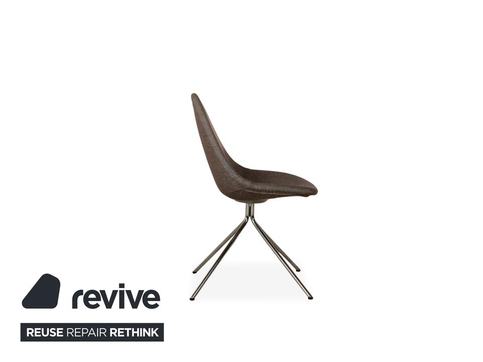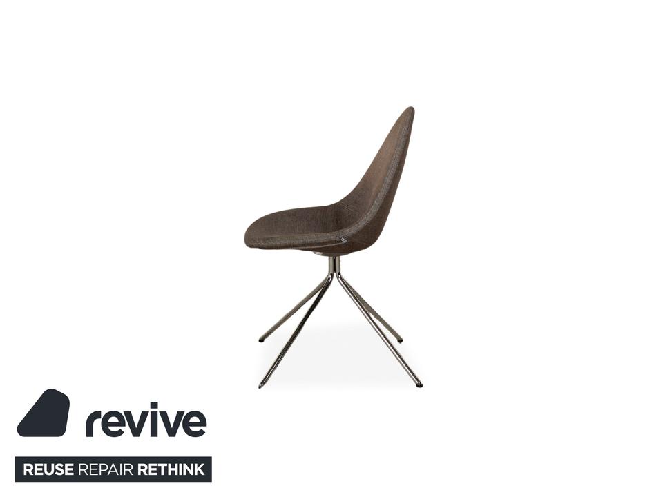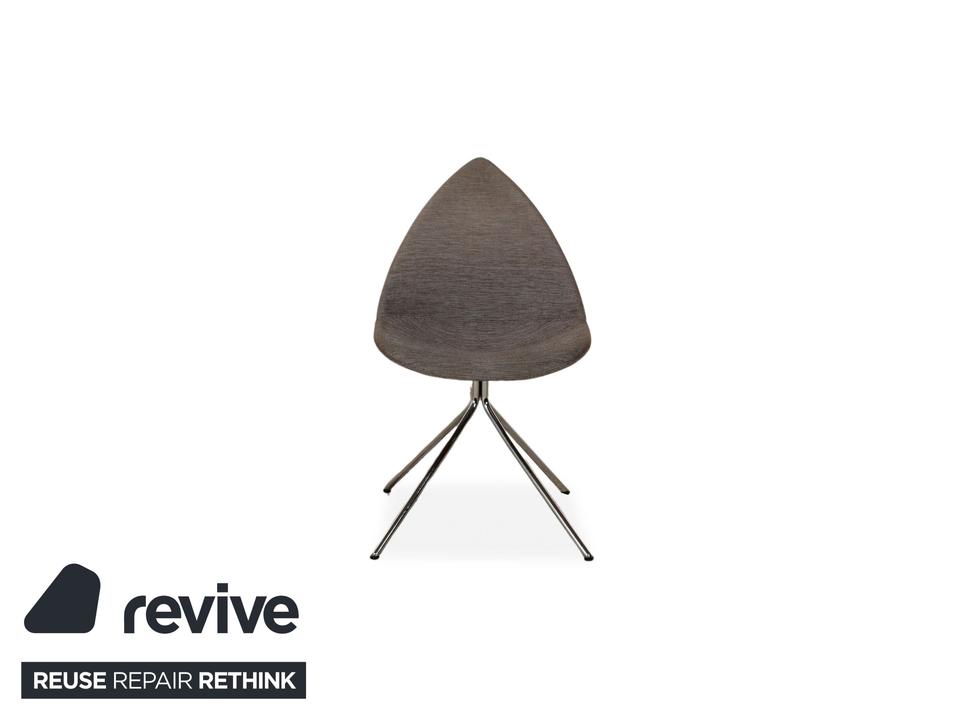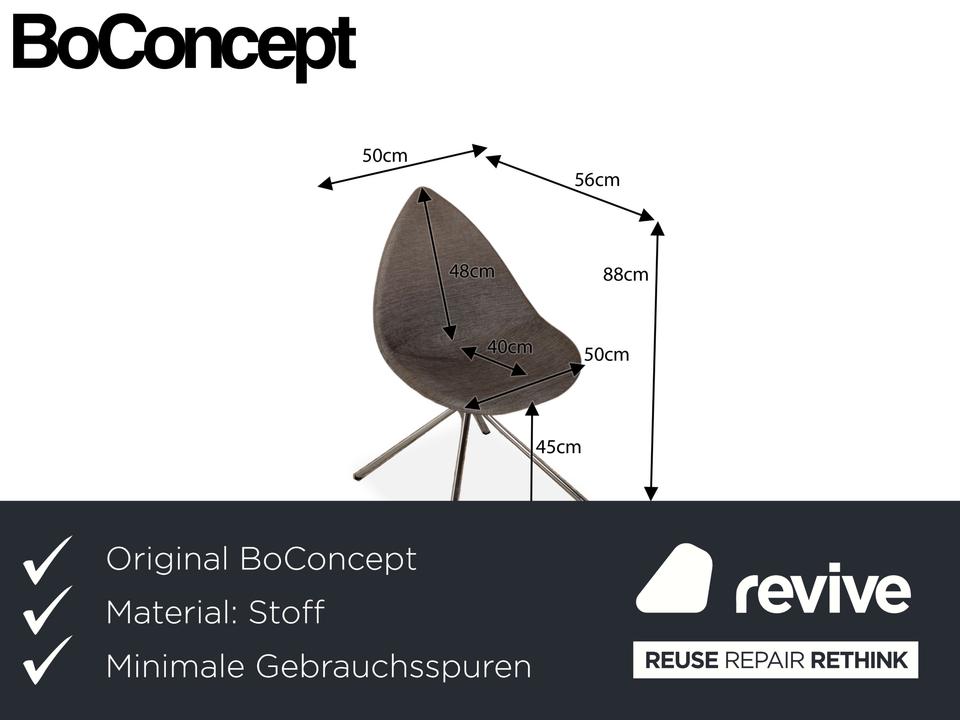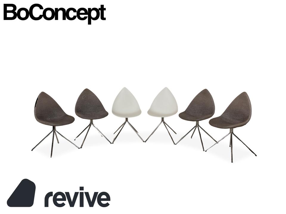 Die Stuhl-Garnitur Ottawa von BoConcept besteht aus sechs Stühlen – vier davon mit grauem Stoffbezug, zwei davon als Kunststoffausführung.