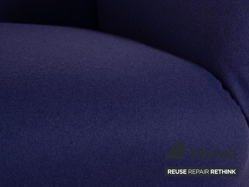 Die Stuhl Garnitur 684 von Cassina ist mit einem blauen Stoff bezogen und steht auf unauffälligen Füßen. Sie zeichnet sich durch die massive, kompakte Optik und das extravagante Design aus.
