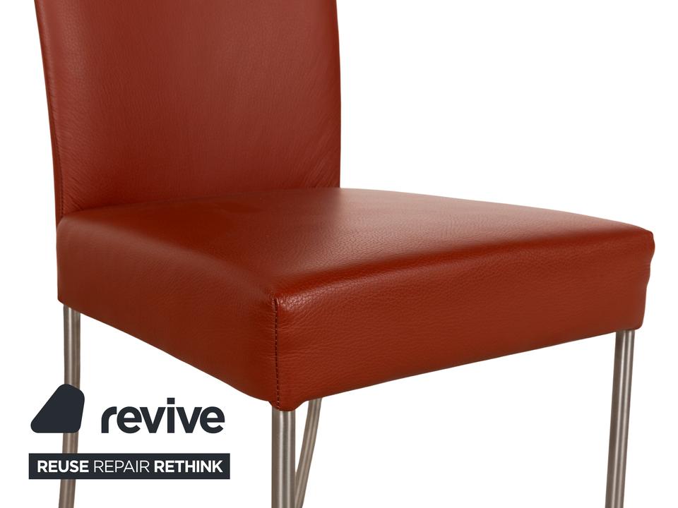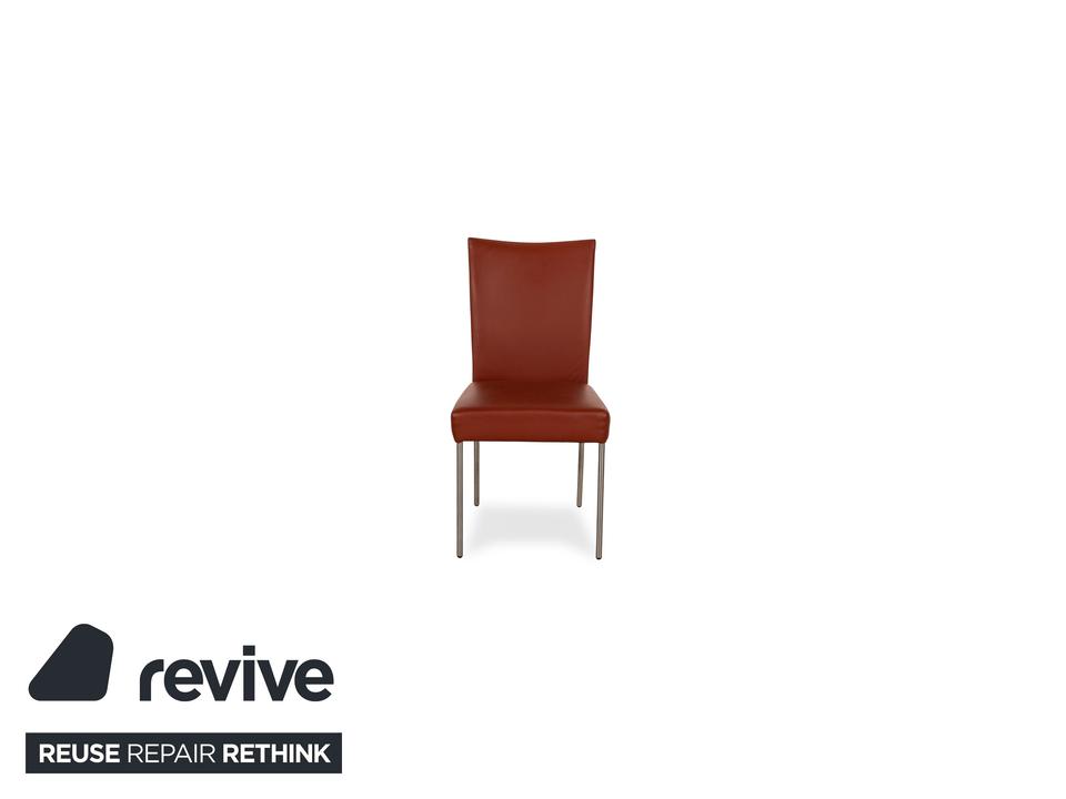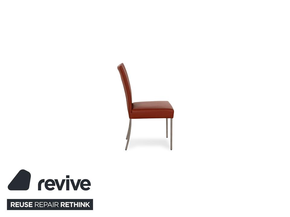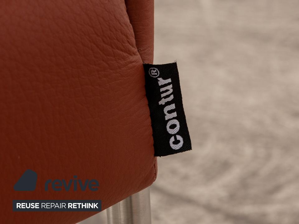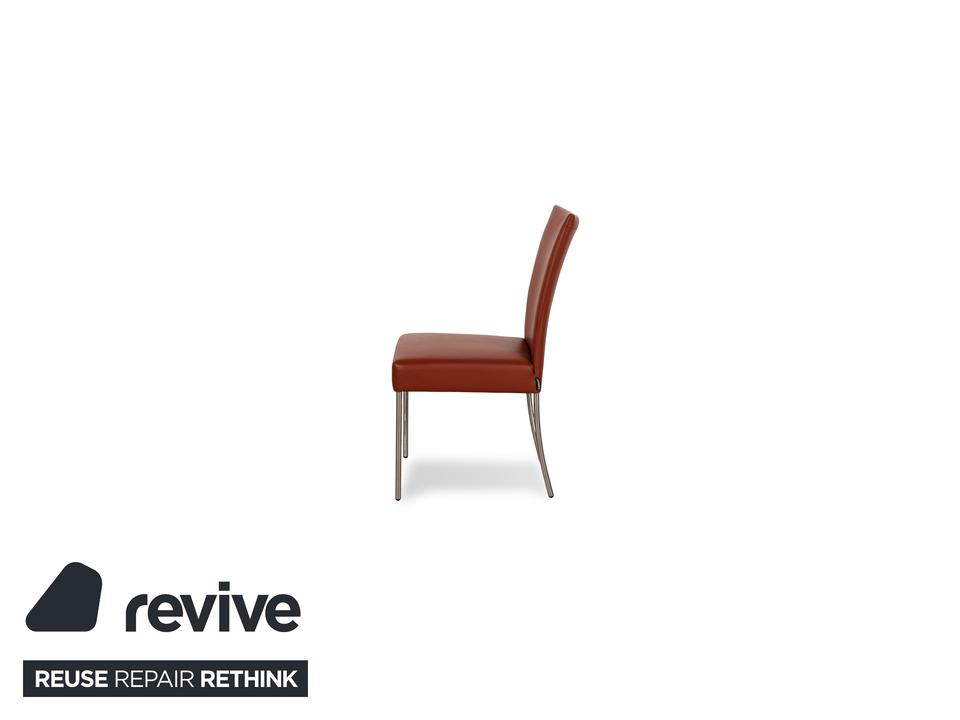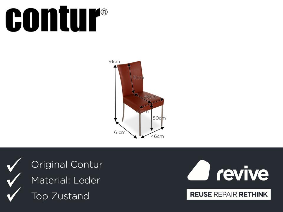 Die Stuhl Garnitur Pentahouse von Contur ist mit einem braunen Echtleder bezogen und steht auf schmalen Füßen. Sie zeichnet sich durch das klassische Design und die schlichte Optik aus. Die Garnitur besteht aus sechs Stühlen.