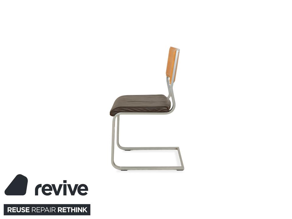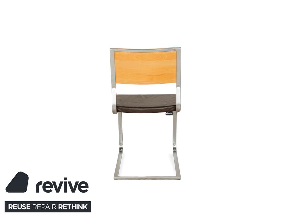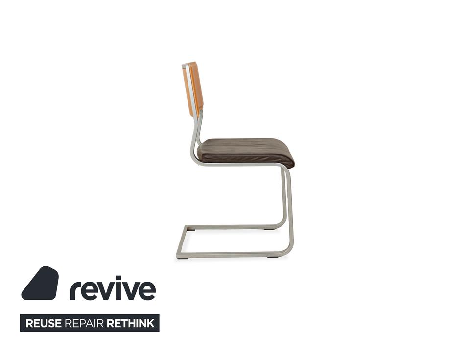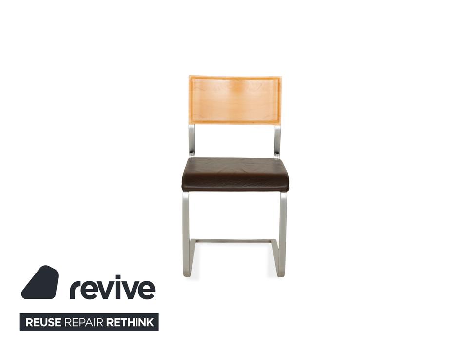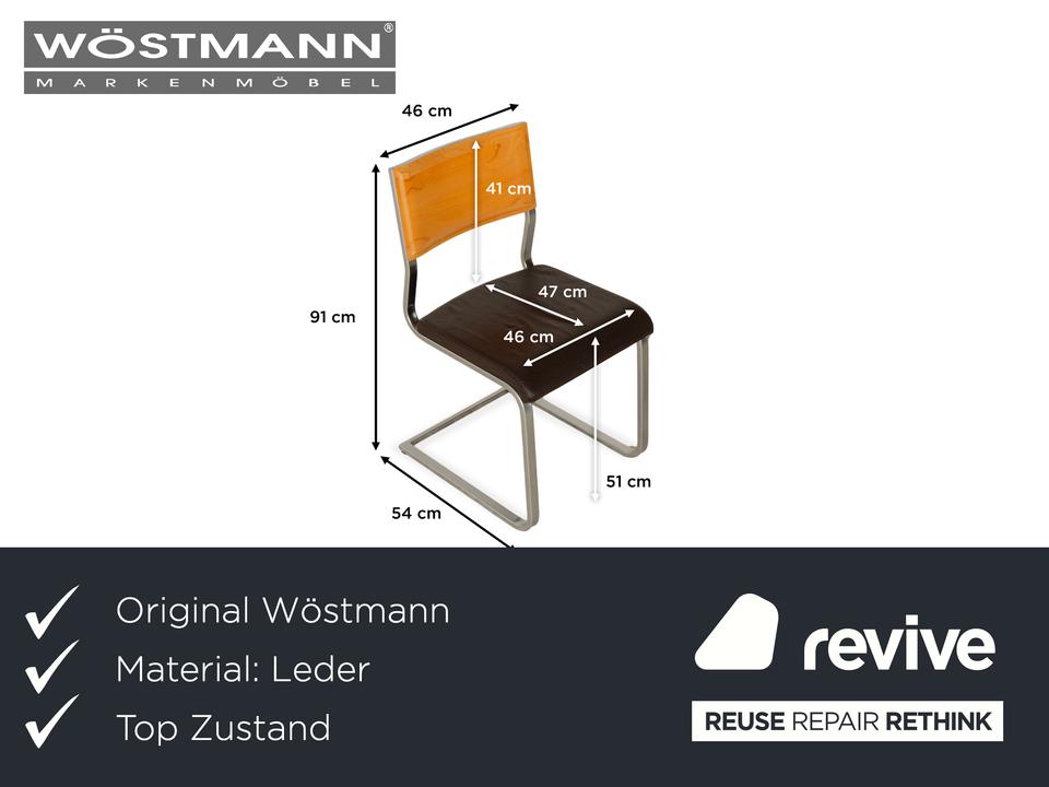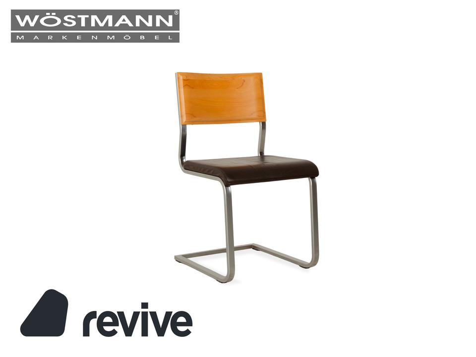6er Garnitur Wöstmann Leder Stuhl Braun Kernbuche Freischwinger