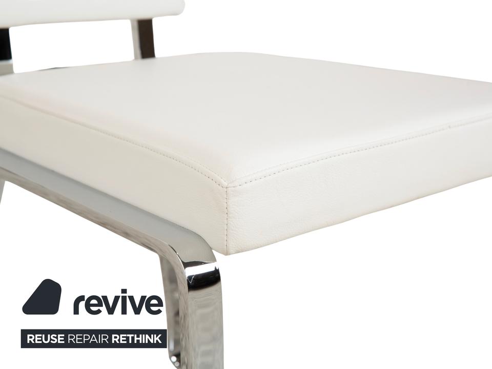 Mit dieser großen Garnitur von Bacher bist du sofort startklar für die nächste Dinnerparty. Es ist gar nicht so leicht, ein passendes Set aus gleich acht hochwertigen Stühlen zu finden – hier bekommst du sie alle auf einen Schlag. Das Design ist modern und wunderbar leicht: Die Sitzschalen sind in feines Leder in einem hellen Creme-Weiß gehüllt, was deinen Essbereich sofort freundlich und edel wirken lässt.Getragen werden die Stühle von einem glänzenden Chrom-Gestell in Kufenform (Sled Base). Das sieht nicht nur schick aus, sondern sorgt durch die leichte Federung oft auch für ein dynamisches, angenehmes Sitzgefühl. Die hohen Rückenlehnen bieten dir und deinen Gästen auch bei langen Abenden optimalen Halt. Ein beeindruckendes Ensemble, das perfekt an große Tische passt und Modernität mit klassischer Eleganz verbindet.