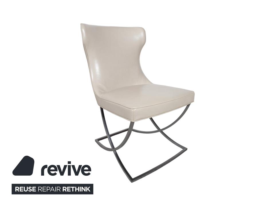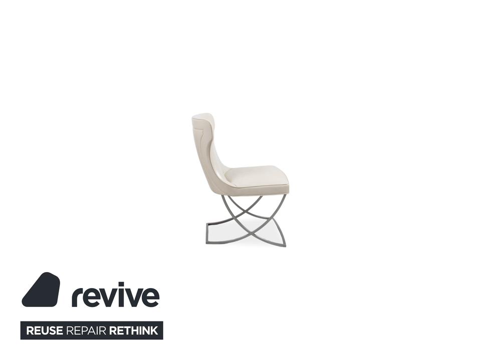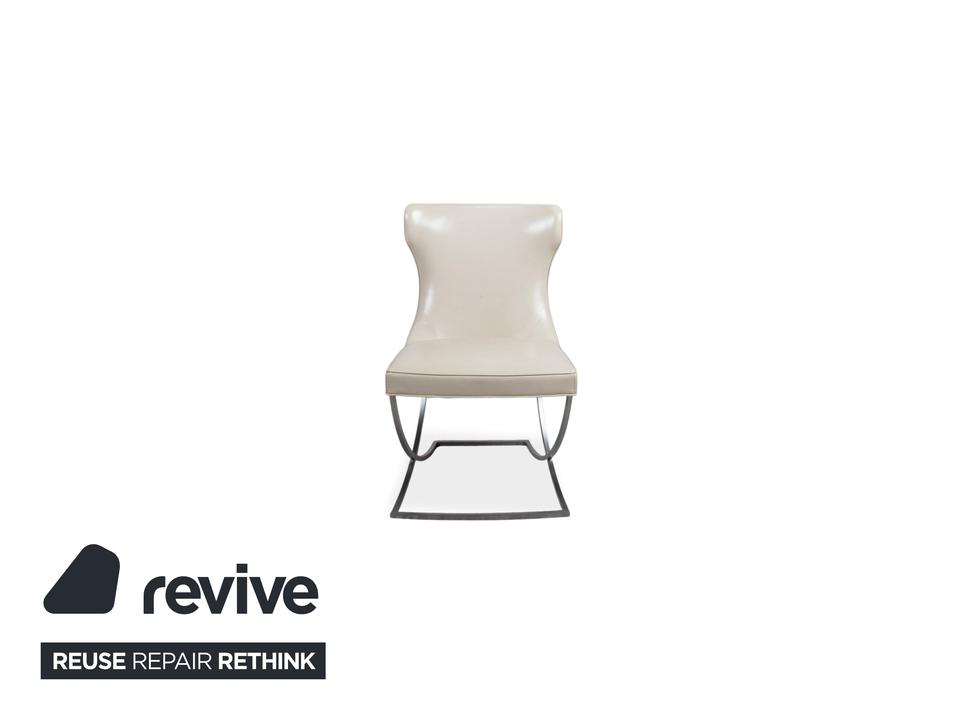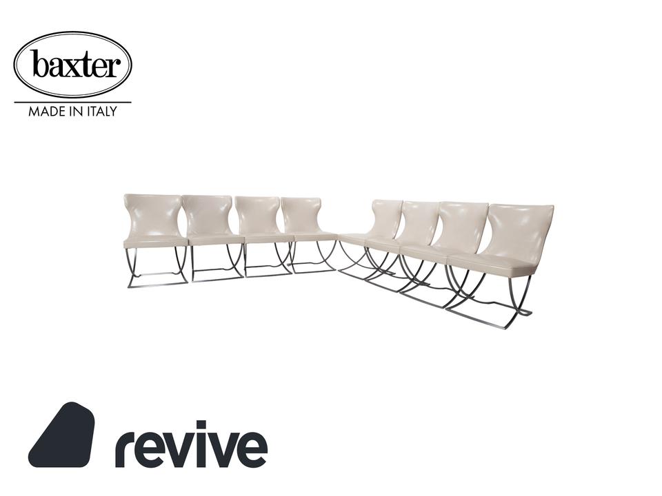 8er Garnitur Baxter Paloma Leder Stuhl Beige Weiß Chrom Esszimmer