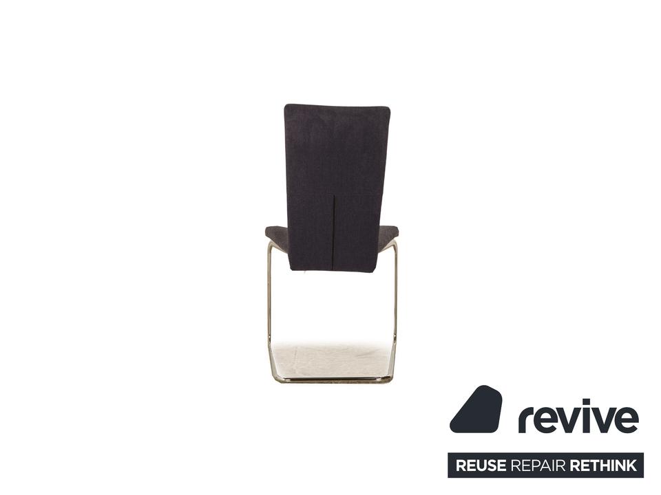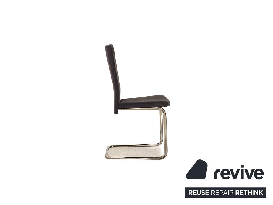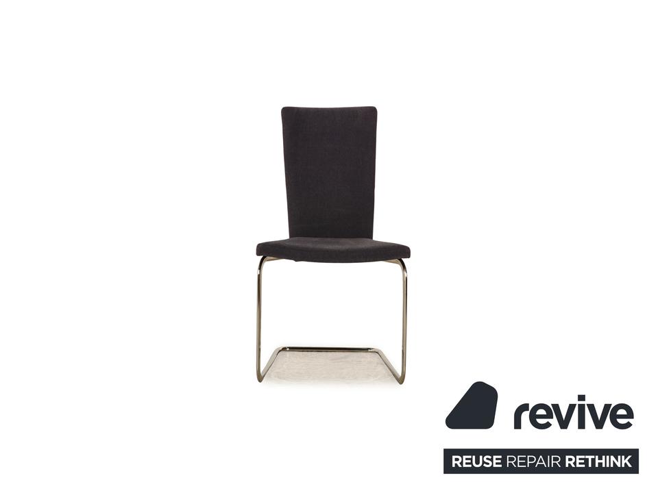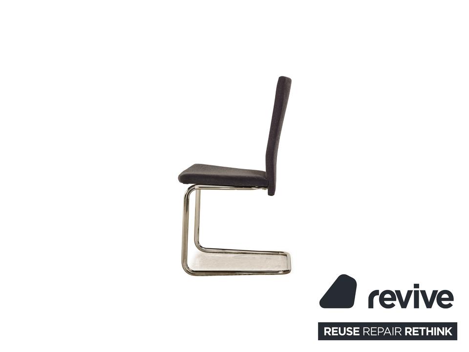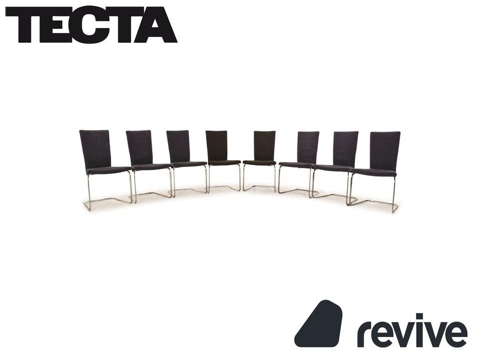 Die Stuhl Garnitur B20 von Tectra besteht aus acht Stühlen, wovon zwei Stühle mit dunkelgrauem und sechs Stühle mit dunkelblauem Stoff bezogen sind. Das minimalistische Design zeichnet sie aus.