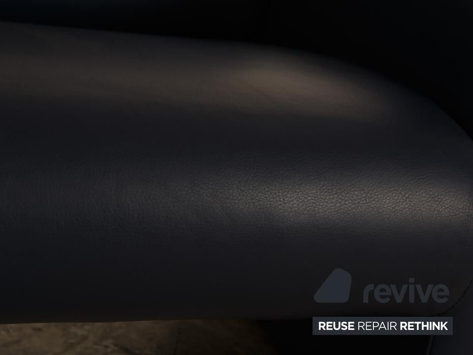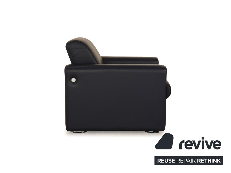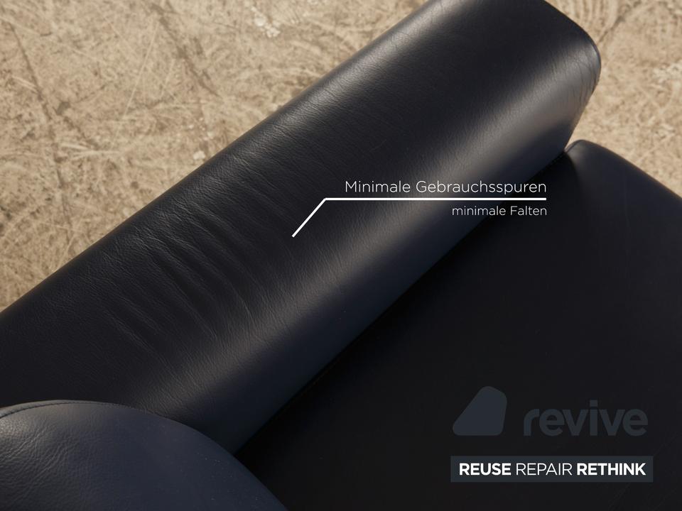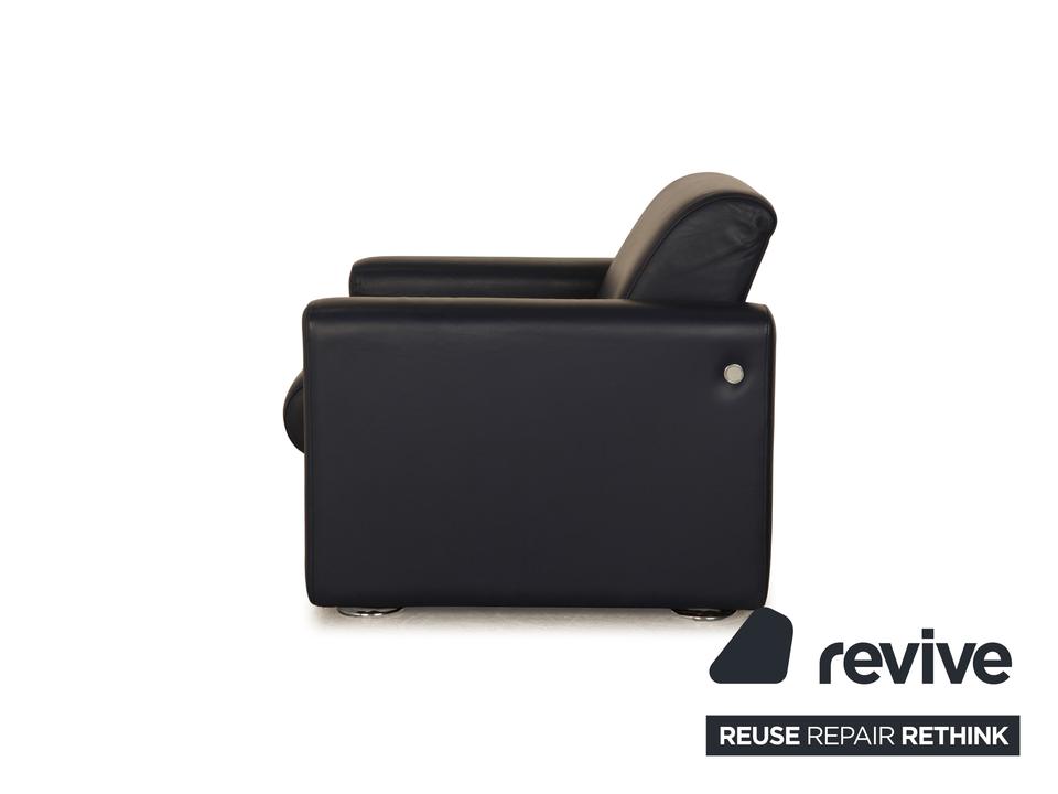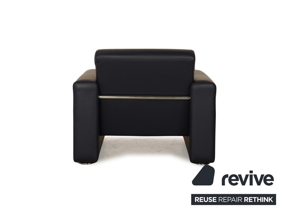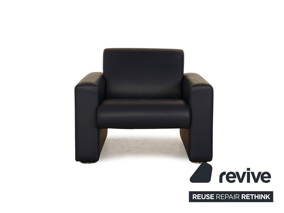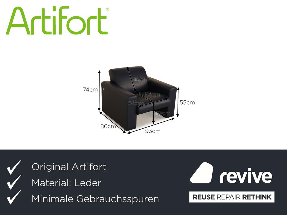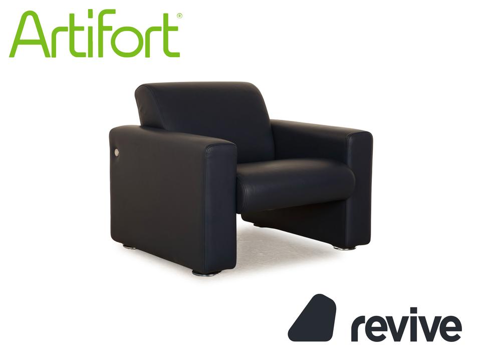 Der Sessel von Artifort ist mit einem dunkelblauen Echtleder bezogen und steht auf silbernen Metallfüßen. Das zeitlose, klassische Design zeichnen ihn aus.