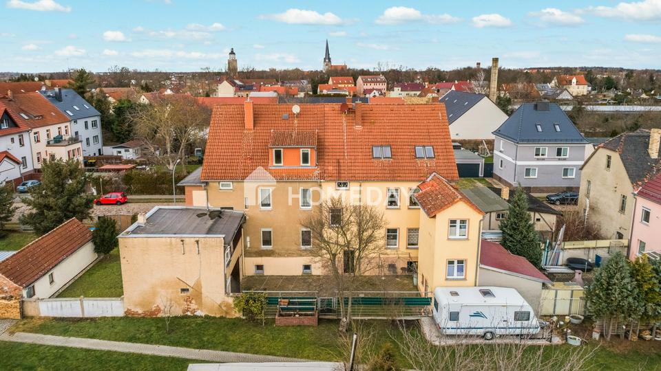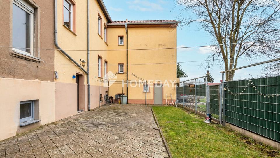 Diese charmante Doppelhaushälfte mit drei Wohneinheiten besticht durch ihre ruhige und idyllische Lage in Lützen, die gleichzeitig eine hervorragende Anbindung bietet. Das ca. 251 Quadratmeter große Grundstück umfasst neben dem Haus eine Terrasse in einem gepflegten Innenhof mit kleiner Grünfläche sowie eine praktische Doppelgarage mit ca. 80 Quadratmetern. Der großzügige Außenbereich auf der Rückseite der beiden Häuser bietet reichlich Platz für Familien und individuelle Entfaltungsmöglichkeiten und rundet das Angebot ab.