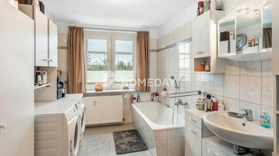 Im Inneren überzeugt das Haus mit solider Ausstattung. Besonders hervorzuheben sind die großzügigen Tageslichtbäder, die jeweils mit einer Badewanne und einem Waschmaschinenanschluss ausgestattet sind.