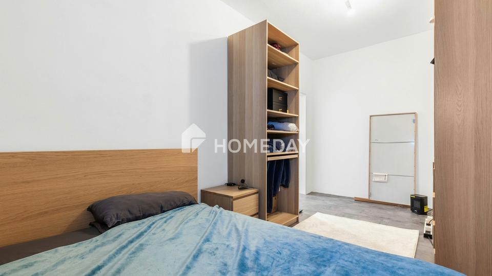 Ihr neues Schlafzimmer ist ein ruhiger Rückzugsort, der ausreichend Platz für ein großes Bett und einen Kleiderschrank bietet. Das Fenster sorgt auch hier für eine helle und freundliche Atmosphäre.