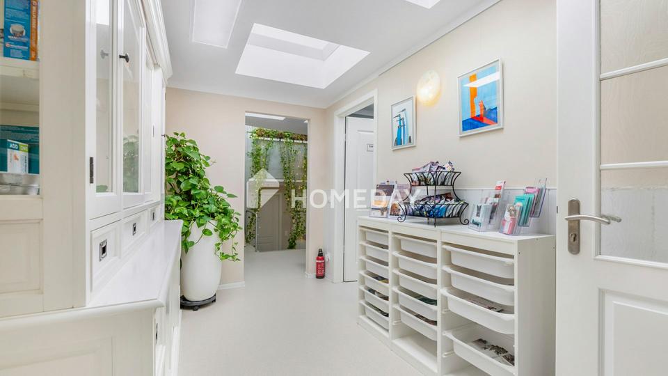 Die Immobilie erstreckt sich über drei Etagen mit einer Gesamtfläche von rund 240 Quadratmetern, die derzeit vollständig als Gewerbeeinheit genutzt wird. Die großzügige Raumaufteilung umfasst insgesamt zwölf Zimmer und bietet vielfältige Gestaltungsspielräume – sei es für klassische Büroflächen, kreative Arbeitsumgebungen oder kombinierte Nutzungskonzepte. Darüber hinaus besteht die Möglichkeit, die gesamte Einheit in Wohnraum umzuwandeln, was zusätzlichen Spielraum für alternative Nutzungskonzepte oder marktbedingte Anpassungen eröffnet.