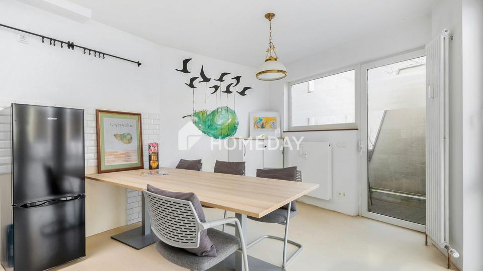 Diese besondere Einheit ist Teil einer kleinen Wohnungseigentümergemeinschaft (WEG) mit insgesamt vier Einheiten. Innerhalb dieser Wohneinheit verteilen sich die drei Ebenen, die durch zwei separate Eingänge erschlossen sind: Einer befindet sich straßenseitig, unabhängig vom allgemeinen Hausflur, der zweite im abschließbaren Hinterhof. Gemeinschaftsbereiche wie der Hausflur oder der Aufzug haben daher keine Relevanz für diese Einheit.