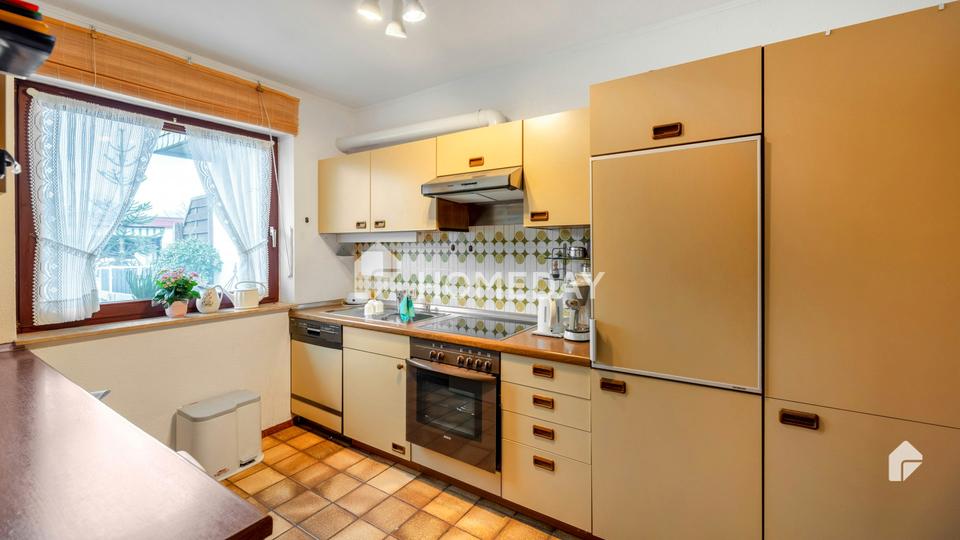 • Eine gepflegte Einbauküche mit Markengeräten ist ebenfalls Teil des Angebots.