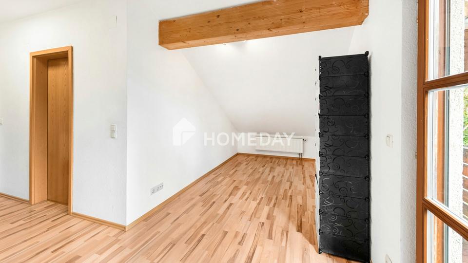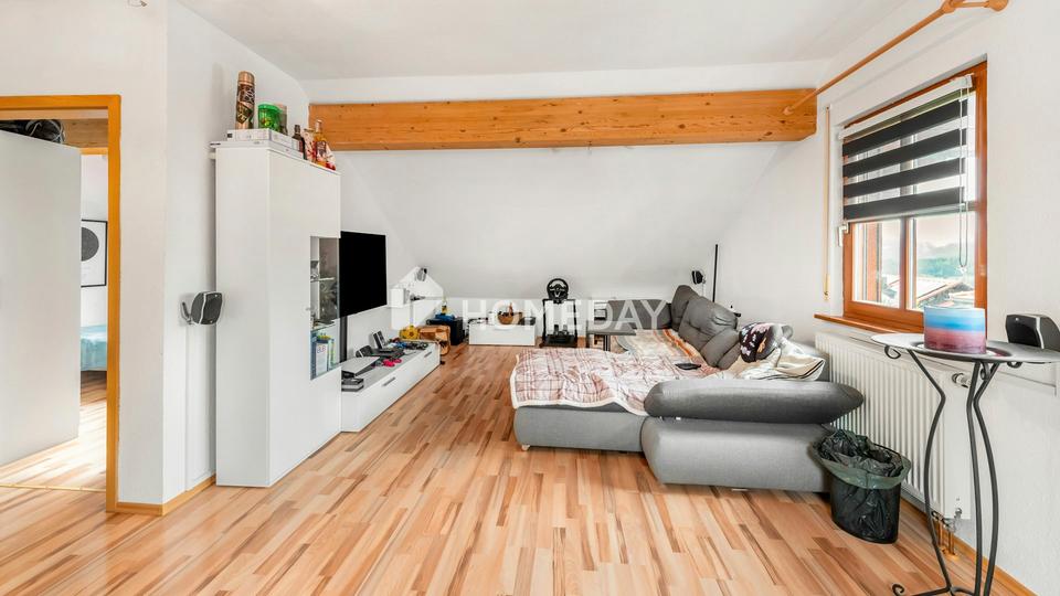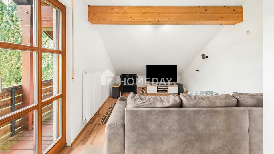 Im Dachgeschoss befinden sich zwei nahezu identische Wohneinheiten. Die erste Einheit punktet mit einem hellen Wohnzimmer, einem separaten Schlafzimmer, einem Tageslichtbad mit Dusche sowie einem praktischen Abstellraum. Ein Südbalkon bietet zudem einen schönen Blick ins Grüne. Die zweite Wohneinheit entspricht in Größe und Aufteilung dem ersten Grundriss, verzichtet jedoch auf einen Balkon. Beide Einheiten bieten ideale Voraussetzungen für die Vermietung, erwachsene Kinder oder Homeoffice-Lösungen.