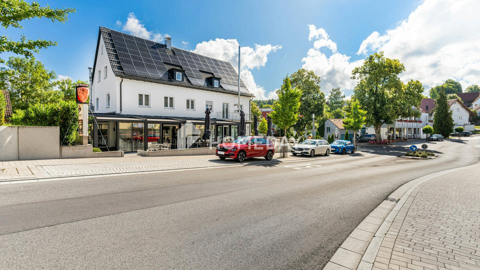Die Immobilie befindet sich im Herzen von Dunningen, einem familienfreundlichen und lebendigen Ort mit rund 6.000 Einwohnern im Landkreis Rottweil. Die Lage zeichnet sich durch ihre zentrale Position innerhalb des Ortes aus, wodurch viele wichtige Einrichtungen bequem zu Fuß erreichbar sind. Der historische Ortskern mit Rathaus, Geschäften, Gastronomie und Dienstleistungsangeboten liegt nur wenige Minuten entfernt, sodass kurze Wege im Alltag garantiert sind. Gleichzeitig ist die Umgebung ruhig und geprägt von gewachsener Wohnstruktur, was die Lage sowohl für Familien als auch für Berufstätige attraktiv macht.