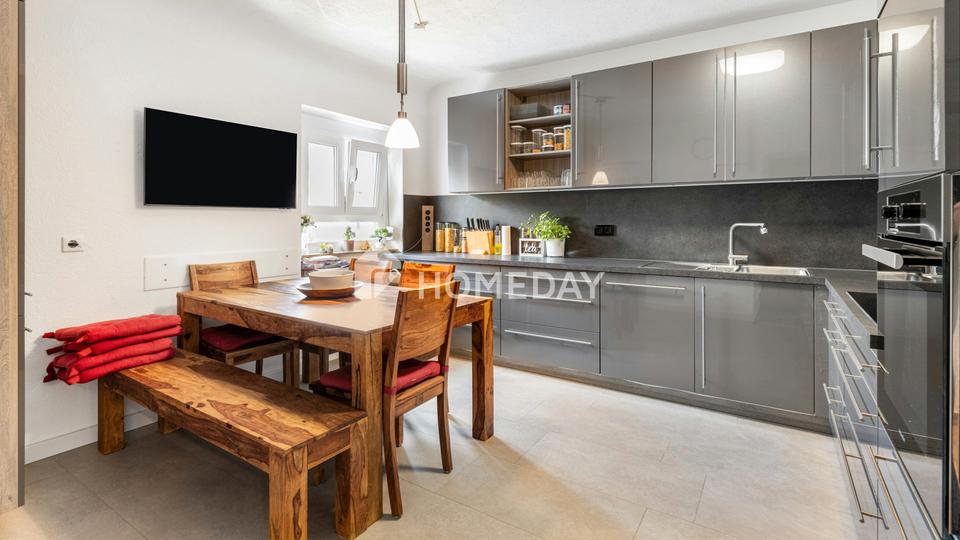 Das Ober- und Dachgeschoss umfassen zusammen eine Wohnfläche von ca. 240 m², verteilt auf insgesamt acht Zimmer. Im ersten Obergeschoss wohnt aktuell der Eigentümer selbst, während die Wohnung im Dachgeschoss vermietet ist. Beide Etagen überzeugen durch helle, großzügige Räume, durchdachte Grundrisslösungen sowie zahlreiche modernisierte Bereiche – darunter erneuerte Badezimmer, hochwertige Küchen, ein Balkon und gepflegte Nutzflächen. Die flexible Raumaufteilung ermöglicht sowohl klassisches Wohnen als auch Wohnen-und-Arbeiten-Konzepte.