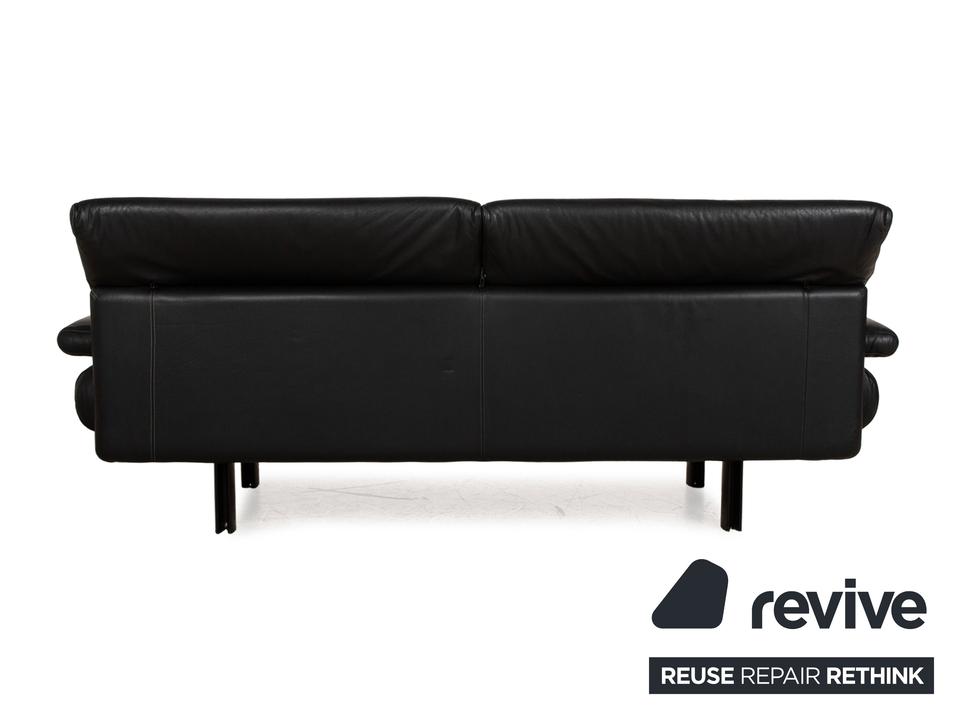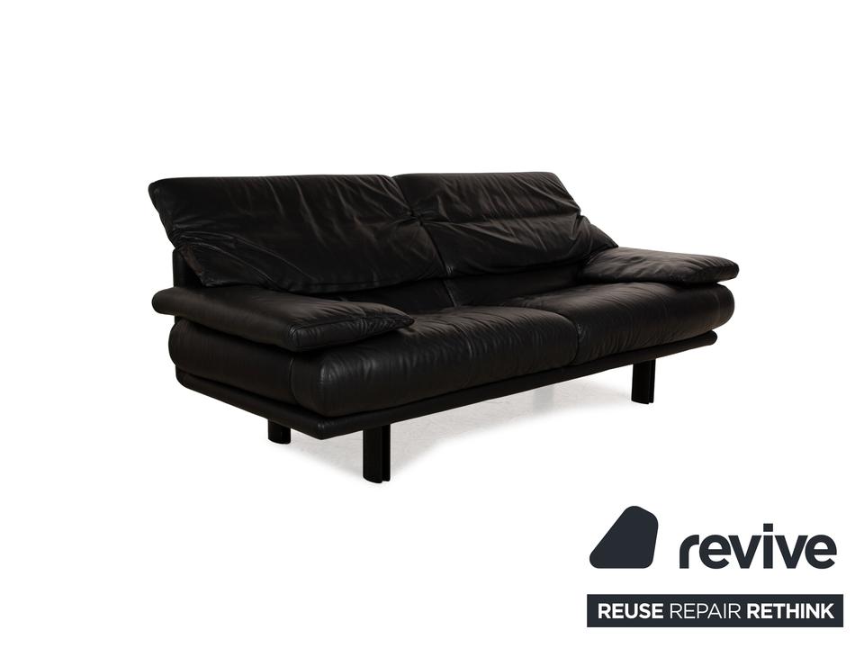 Das Alanda Sofa von B&B Italia ist mit einem schwarzen Echtleder bezogen und steht auf schwarzen Füßen. Der Zweisitzer überzeugt mit seinem schlichten Design und der klassischen Optik.