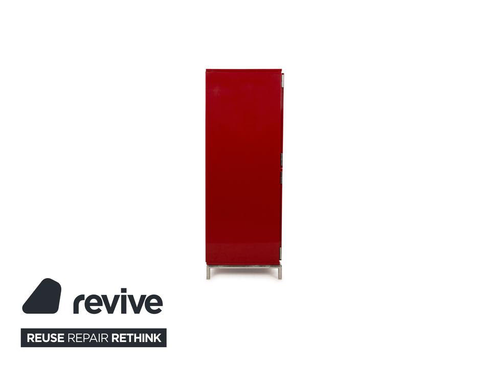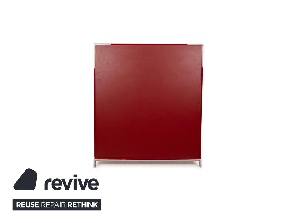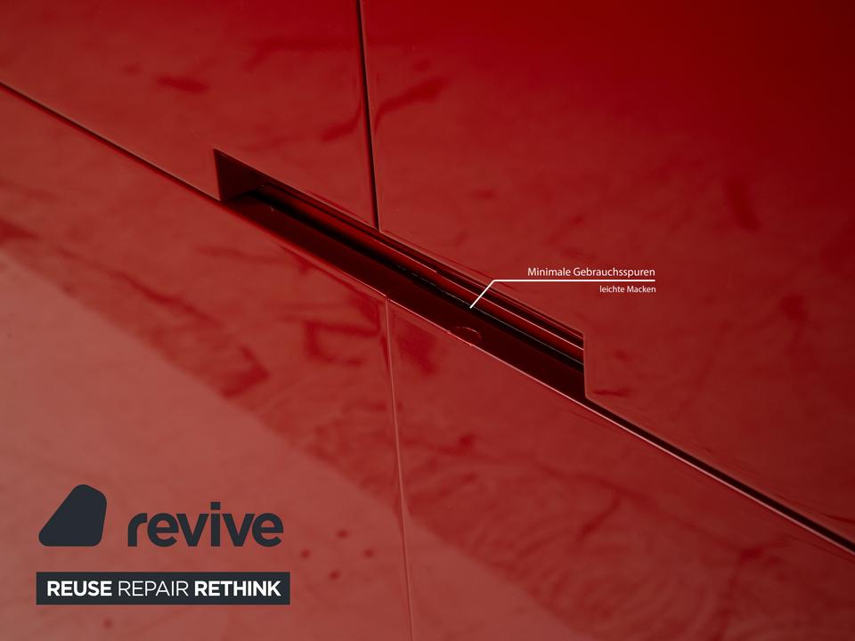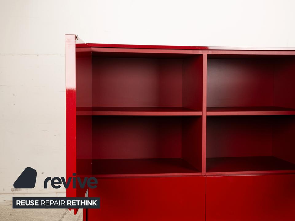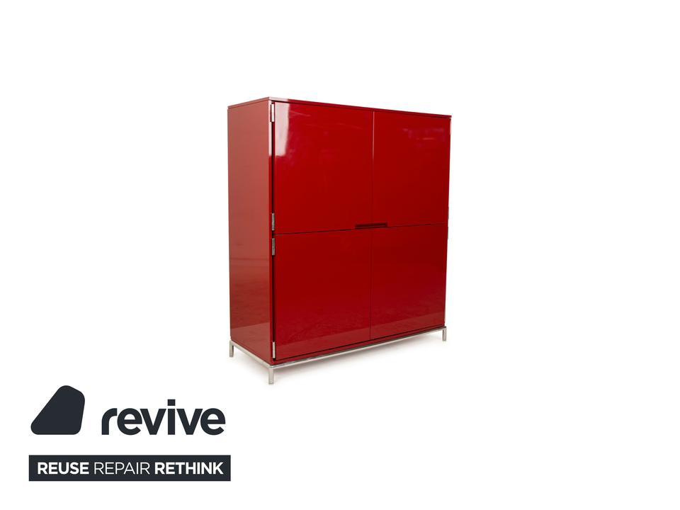 Das Sideboard von B&B Italia ist aus rot lackiertem Holz mit Hochglanz-Finish gefertigt und steht auf kurzen Metallbeinen. Bei diesem Highboard gehen gelungenes Design und Funktionalität Hand in Hand, denn der aus Holz und Metallstreben gefertigte Korpus schwebt stilvoll ein Stück über dem Boden und bietet in seinem Inneren hinter vier Schranktüren viel Stauraum.