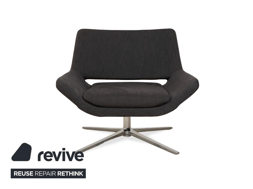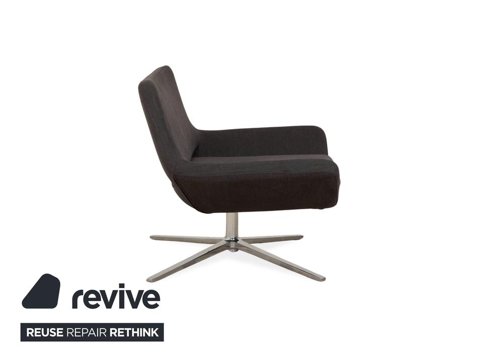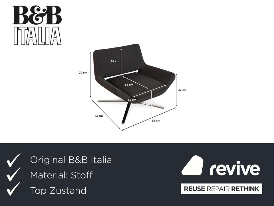 Der B&B Italia Metropolitan Stoffsessel kombiniert elegantes Design mit hohem Sitzkomfort. Entworfen von Jeffrey Bernett, steht dieses Modell für moderne Lounge-Ästhetik. Der Sessel ruhte auf einem polierten Aluminium-Untergestell in Chrom-Optik. Der Bezug besteht aus hochwertigem gunkelgrauen Stoff, was die zeitlose Optik unterstreicht.