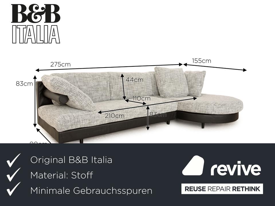 Das Ecksofa Sity von B&B Italia ist mit einem schwarzgrauen Stoff neu bezogen und steht auf schmalen Füßen. Es zeichnet sich durch das klassische Design und die abgerundeten Kanten aus.