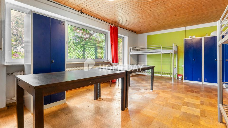 Die Wohnfläche von insgesamt ca. 300 Quadratmetern verteilt sich auf neun gut geschnittene Zimmer und bietet damit viel Raum für individuelle Wohnkonzepte, sei es für eine große Familie, Mehrgenerationenwohnen oder eine Kombination aus Eigennutzung und Vermietung. Als Stauraum steht Ihnen neben einem Abstellraum auch ein Vollkeller zur Verfügung, der reichlich Platz für Hobbys, Vorräte oder Hauswirtschaft bietet.