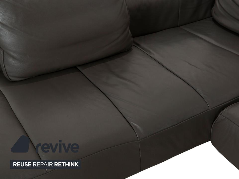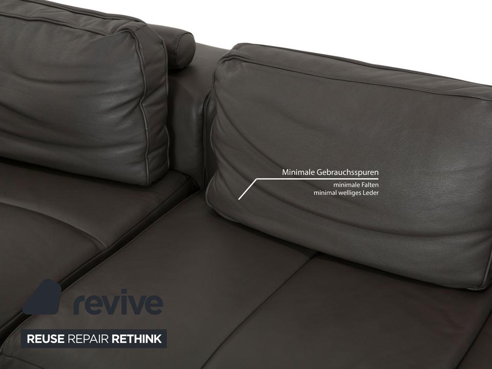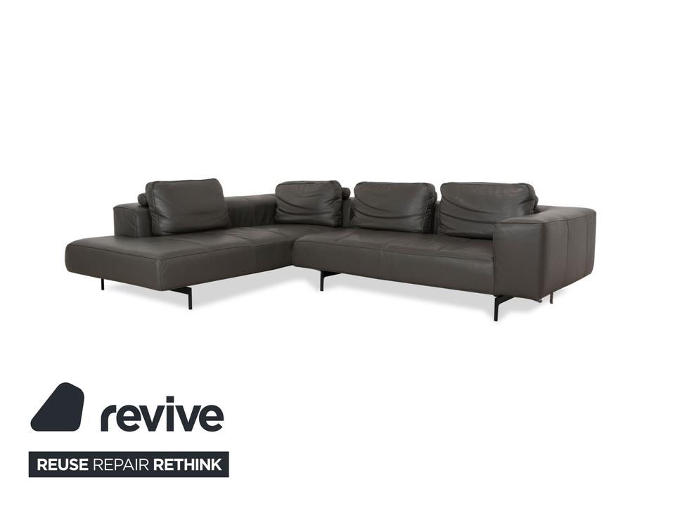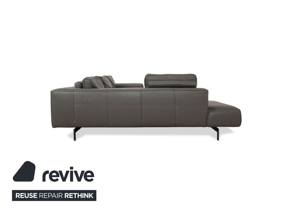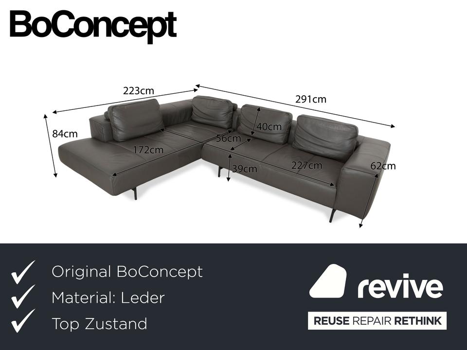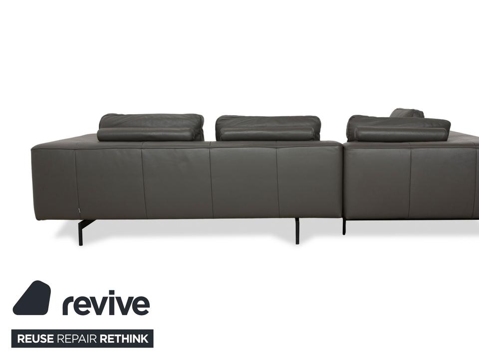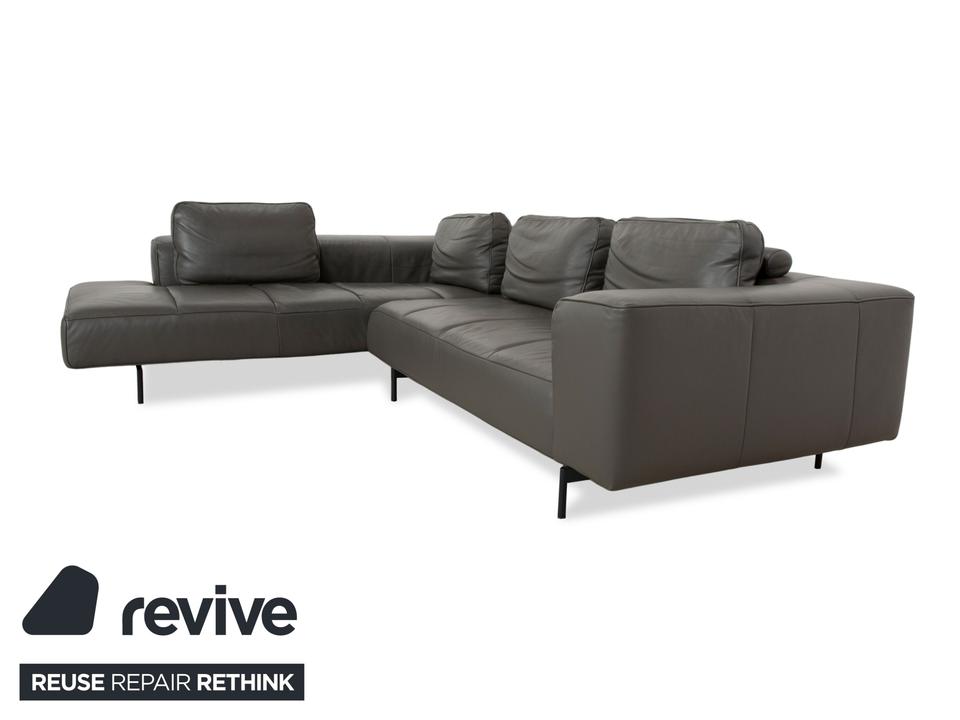 Das Ecksofa Amsterdam von BoConcept ist ein wahrer Hingucker. Der raumgreifende Körper des mit grauem Echtleder bezogenen Sofas thront auf schmalen, schwarzen Metallfüßen. Tiefe Sitzflächen und großzügige Rückenpolster sorgen für hohen Sitzkomfort.