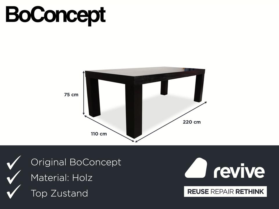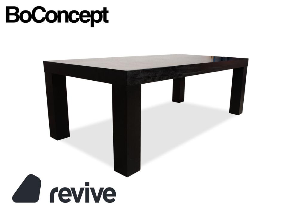 Dieser schwarze Esstisch von BoConcept ist ein echter Allrounder. Das Design verzichtet bewusst auf überflüssiges Dekor und setzt stattdessen auf eine klare, markante Linienführung, die in jedem Raum eine hochwertige Präsenz behält. Durch die dunkle Holzausführung wirkt das Möbelstück besonders modern und lässt sich mühelos in verschiedene Einrichtungsstile integrieren.Die breiten, stabilen Beine aus Holz sorgen für einen sicheren Stand und unterstreichen die wertige Materialwahl dieses Tisches. Auf der großzügigen Fläche hast du richtig viel Platz für gesellige Runden mit Freunden oder ausgiebige Familienessen.