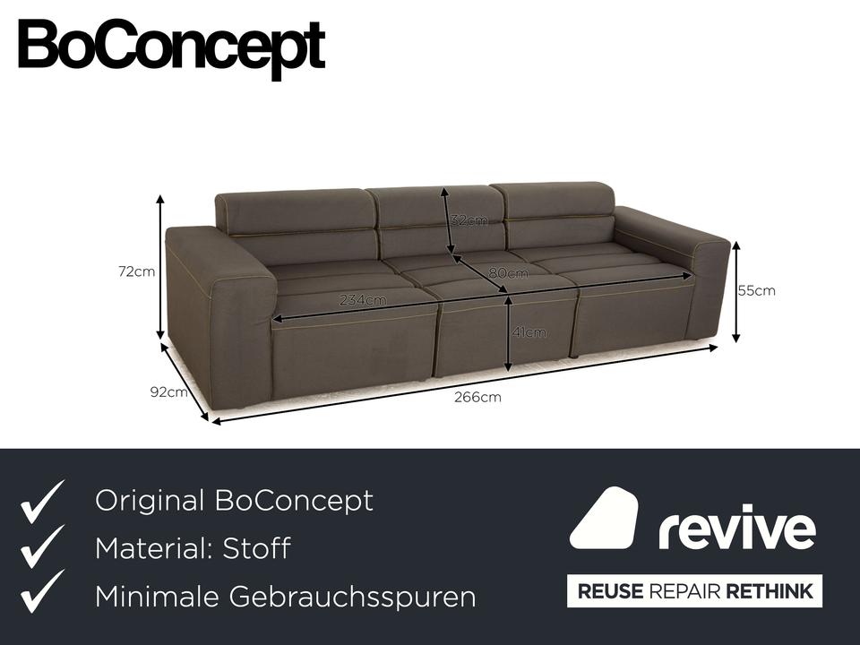 Der Dreisitzer Smartville von BoConcept ist mit einem grauen Stoff bezogen und ist bodentief. Er zeichnet sich durch das kantige, gradlinige Design und die schlichte, zeitlose Optik aus.
