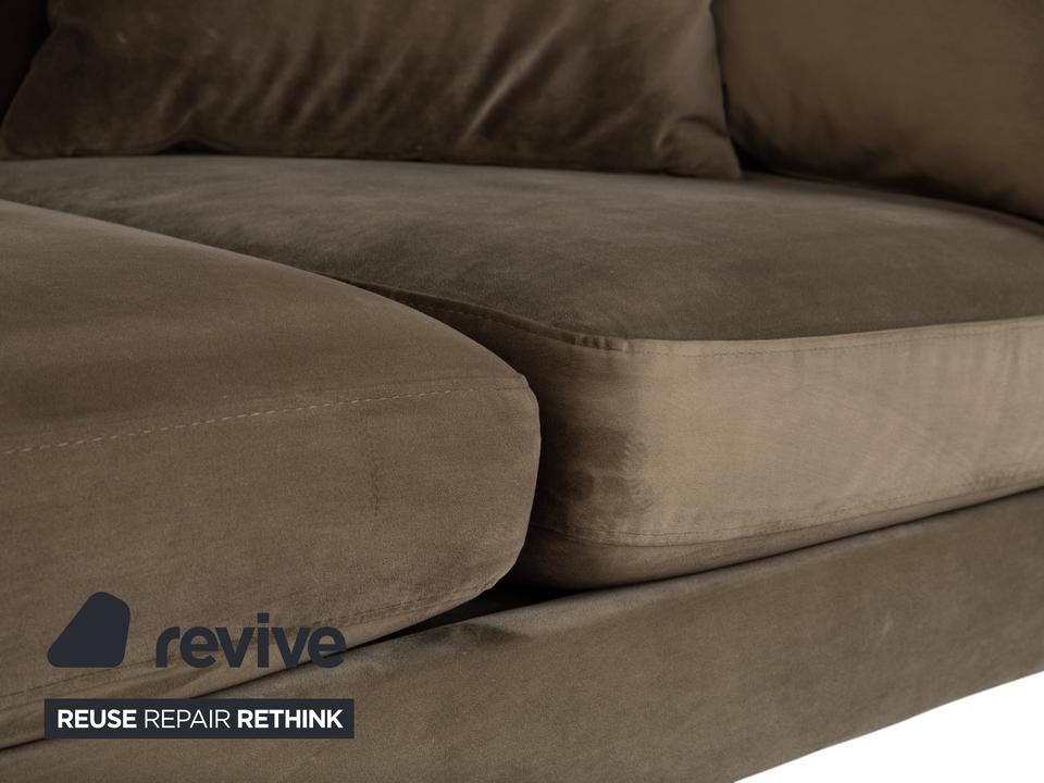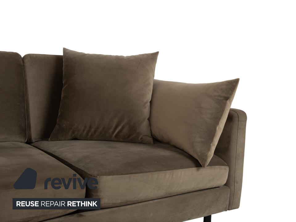 Dieser Bolia Scandinavia Dreisitzer ist ein echter Glücksgriff für alle Fans von nordischem Design. Das Sofa besticht durch seine klare, klassische Formsprache und den olivgrünen Samtstoff, der dem Klassiker eine wunderbar weiche und moderne Optik verleiht. Die schwarzen Metallfüße setzen dabei einen stimmigen Akzent zum olivgrünen Bezug und lassen das Sitzmöbel angenehm leicht im Raum wirken.Was uns an diesem Entwurf besonders fasziniert, ist die Kombination aus der zeitlosen Ästhetik der Scandinavia-Serie und dem gewissen Extra durch die samtige Oberfläche des olivgrünen Stoffs. Durch die Sitzkissen hast du zudem nochmal ein Extrapaket an Gemütlichkeit.