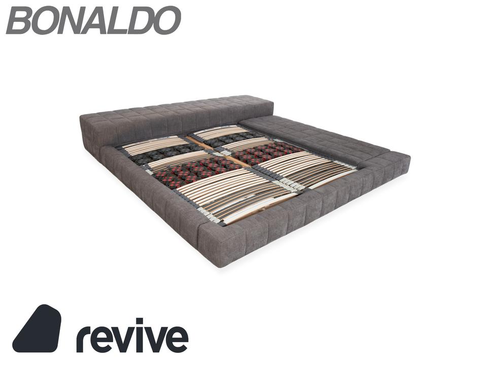 Das Modell „Squaring“ der italienischen Marke Bonaldo ist weit mehr als nur ein Bett, es ist eine Ruheinsel, die den Mittelpunkt eines Schlafzimmers bildet. Ein besonderes Highlight sind die breiten, gepolsterten Seitenwangen – sie rahmen die Liegefläche nicht nur optisch ein, sondern dienen auch als praktische Ablage für das Lieblingsbuch oder Tablet.Das Design besticht durch seine konsequente Geometrie: Eine markante Waffel-Steppung zieht sich über den gesamten Bezug und verleiht dem Bett eine moderne, strukturierte Tiefe. Der hochwertige Stoff in einem zeitlosen Grau unterstreicht die ruhige Ausstrahlung und lässt sich vielseitig kombinieren. Auf der großzügigen Liegefläche von 180 x 200 cm ist Platz für zwei Matratzen, sodass jeder seinen individuellen Schlafkomfort genießen kann. Unterstützt wird dies durch die Lattenroste: Sie bieten nicht nur Federung, sondern lassen sich im Kopf- und Liegebereich hochklappen.