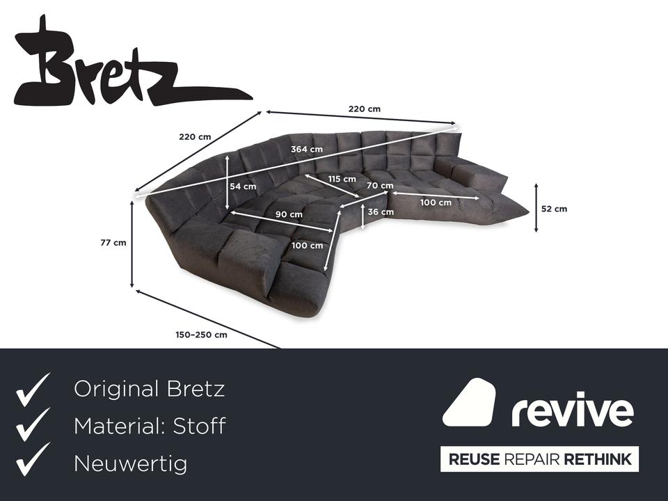 Das Ecksofa Cloud 7 von Bretz ist mit einem grauen Stoff neu bezogen worden und ist bodentief. Es zeichnet sich durch die gesteppten Polster und das massive, moderne Design aus.