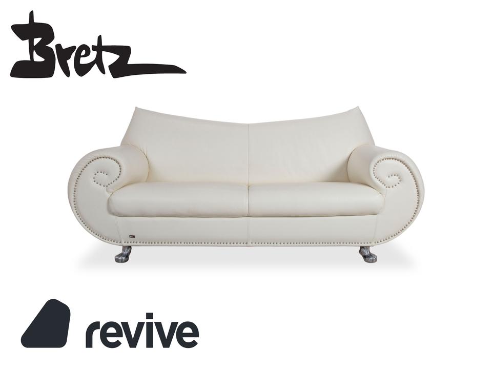 Bretz Gaudi Leder Dreisitzer Sofa Couch Weiß Creme Beige Silber
