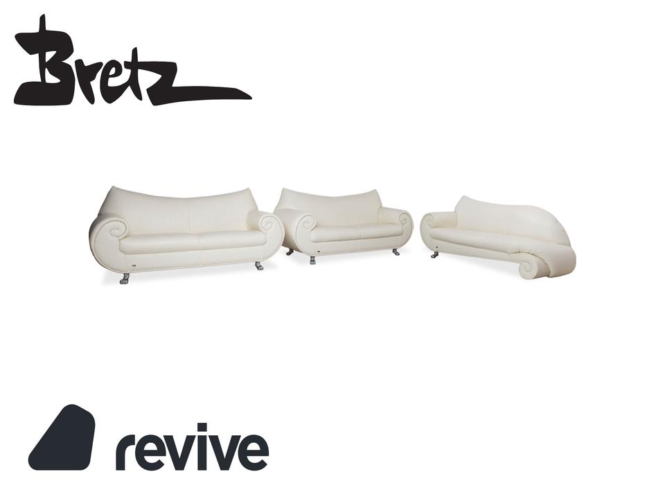 Dieses Set besteht aus einem passenden Zweisitzer und zwei dazugehörigen Dreisitzern. Hier bekommst du ein echtes Statement-Set, das mit seiner extravaganten Form und dem schicken weißen Bezug sofort zeigt, wer hier wohnt. Bretz Gaudi ist berühmt für sein mutiges, fast schon surreales Design, das sich komplett von gewöhnlichen Sofas abhebt und deinen individuellen Stil perfekt unterstreicht.Die markant geschwungene Rückenlehne und die Heftung mit Ziernägeln machen diese Garnitur zu einem absoluten Hingucker. Das weiße Leder bringt die dramatische Silhouette erst richtig zur Geltung, während die silbernen Löwenfüße den luxuriösen Charakter dieses Klassikers vollenden. Durch die Kombination aus dem schicken Leder und der opulenten Formgebung holst du dir Möbelstücke ins Haus, die im Raum sofort die Hauptrolle übernehmen.