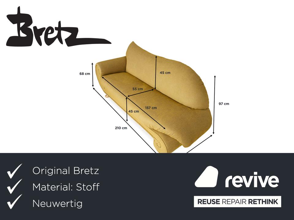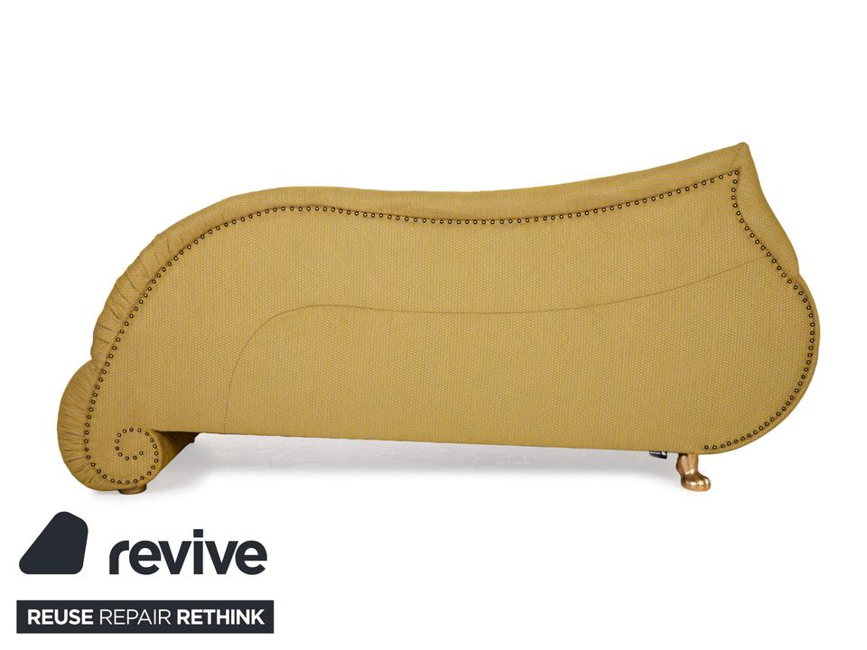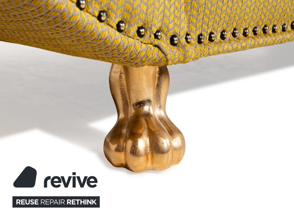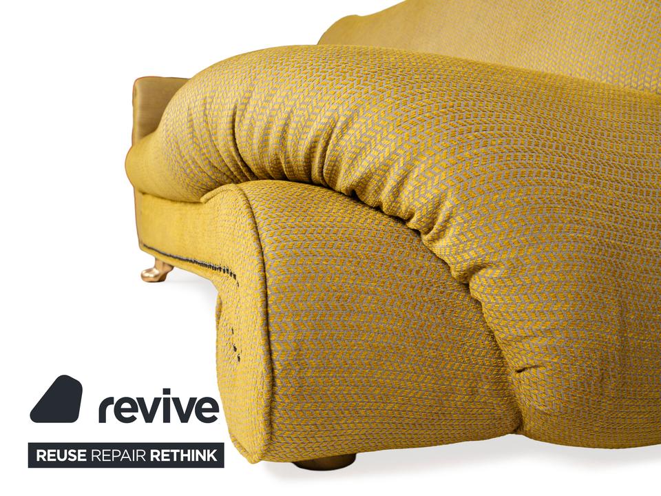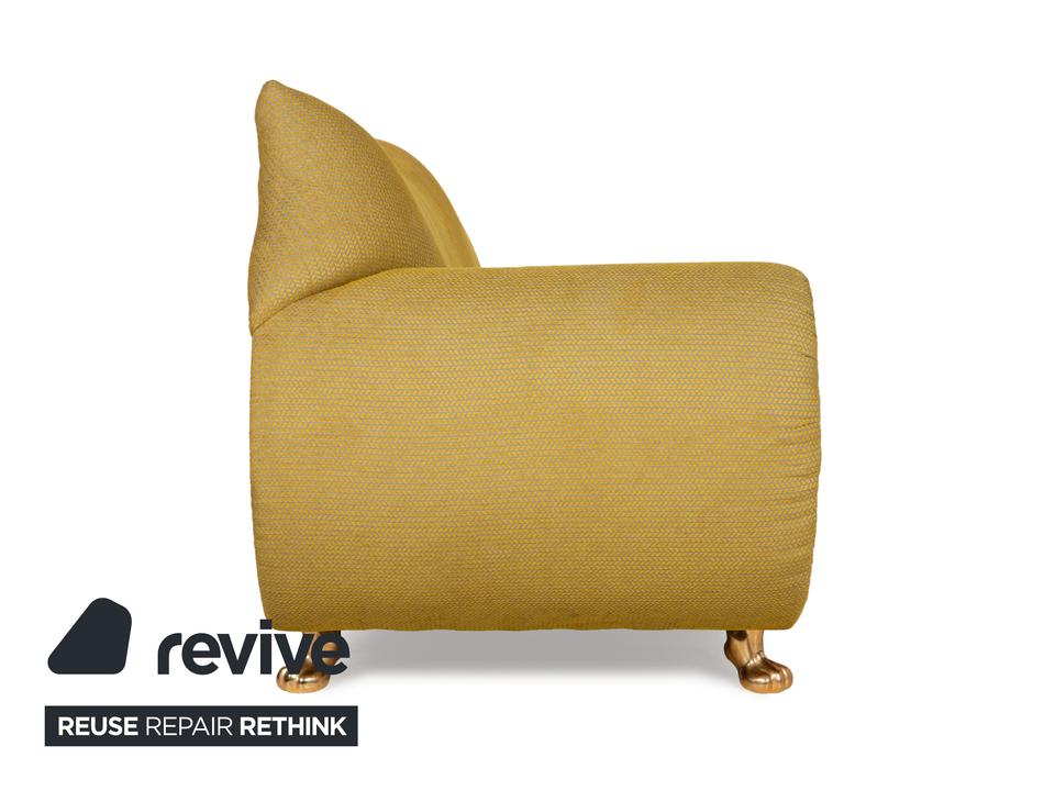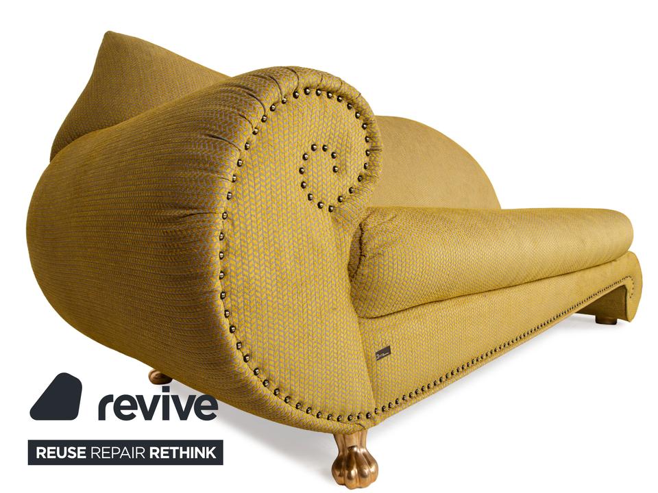 Mit dem Gaudi Sofa von Bretz, mit hochwertigem Stoff (CALIMERA FR 850 von Höpke) in gelb-grünem Muster neu bezogen worden, zeigst du Charakter. Kurven und Extravaganz sorgen für einen Hingucker in jedem Raum und die weiche Polsterung lädt zum Entspannen ein. Der Dreisitzer steht auf einem golden lackierten Fuß im Form einer Löwentatze und ist ein echtes Highlight im modernen Wohnzimmer. Bezugsmaterial: SynthetikfaserBreite in cm: 142,Gewicht: 570 g/lfm,Scheuertouren: 48.000,Lichtechtheit: 5Reibechtheit: nass 4–5, trocken 4–5