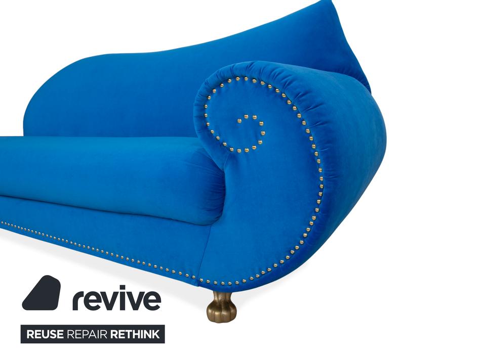 Das Bretz Gaudi Sofa in samtigem Blau ist mehr als nur ein Sitzmöbel – es ist ein stilvoller Eyecatcher, der jedem Raum Persönlichkeit verleiht. Die Recamière-Form sorgt für zusätzliche Bequemlichkeit, lädt zum Ausstrecken und Relaxen ein. Durch sein ausgefallenes Design, insbesondere die geschwungenen und gedrehten Lehnen, ist dieses Sofa ein Statement für Luxus und kreative Wohnkultur.