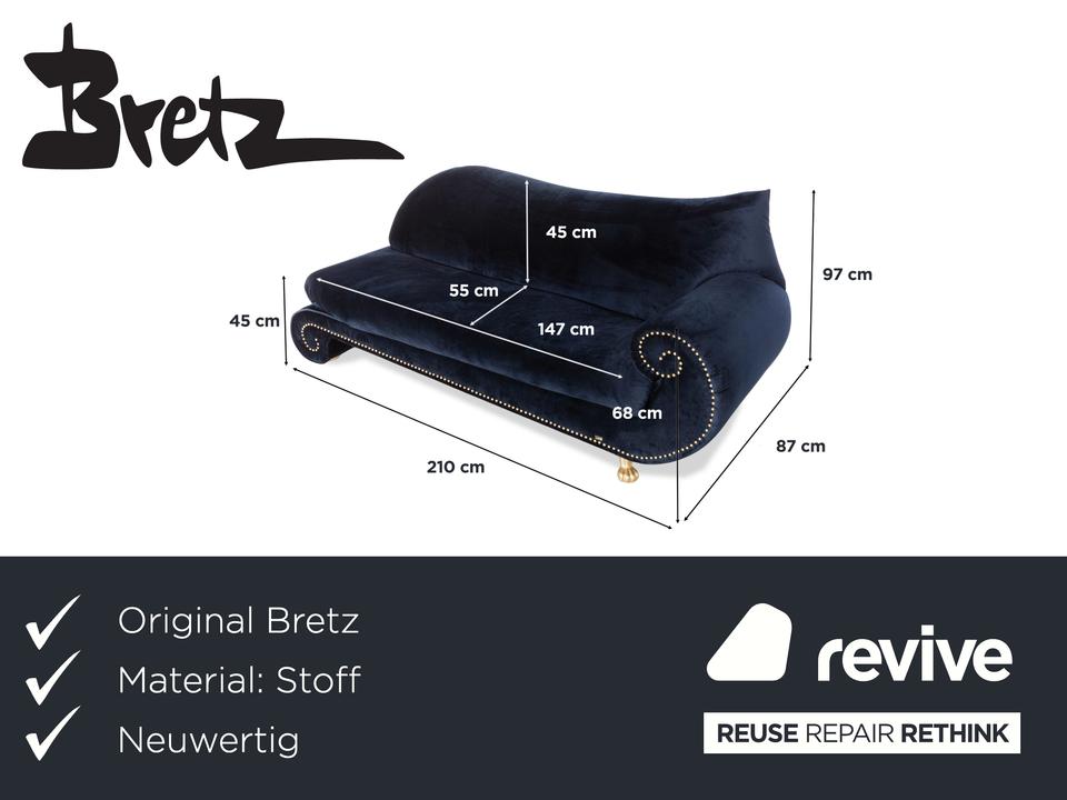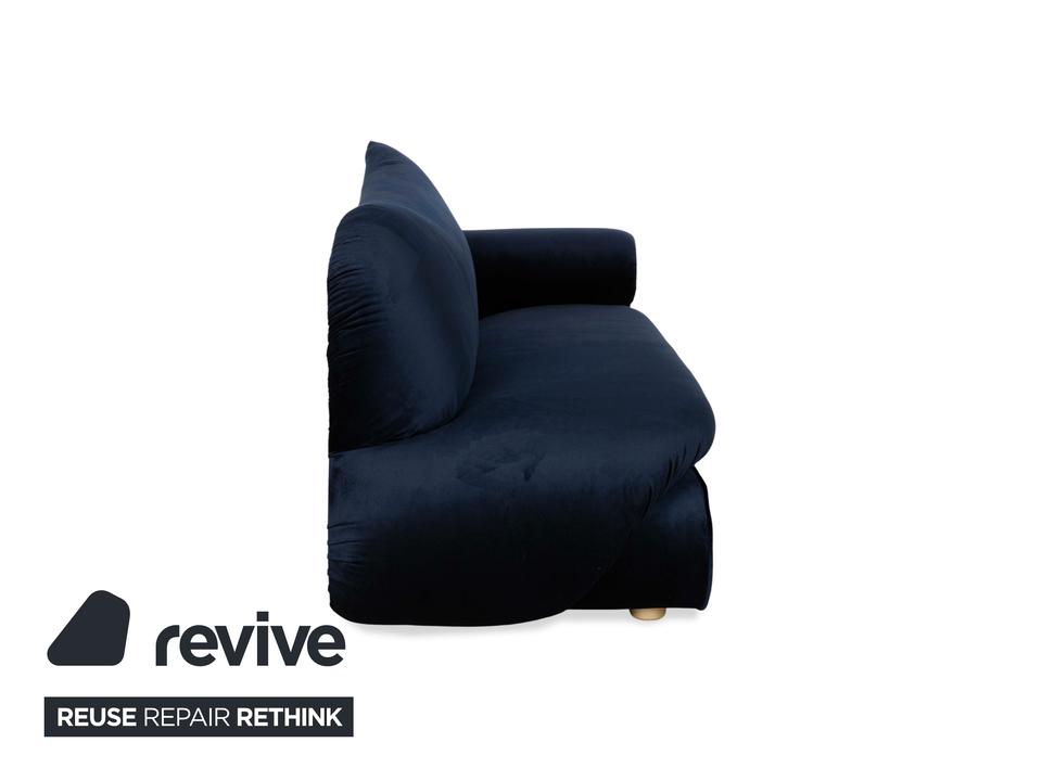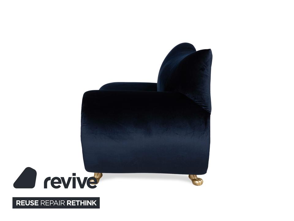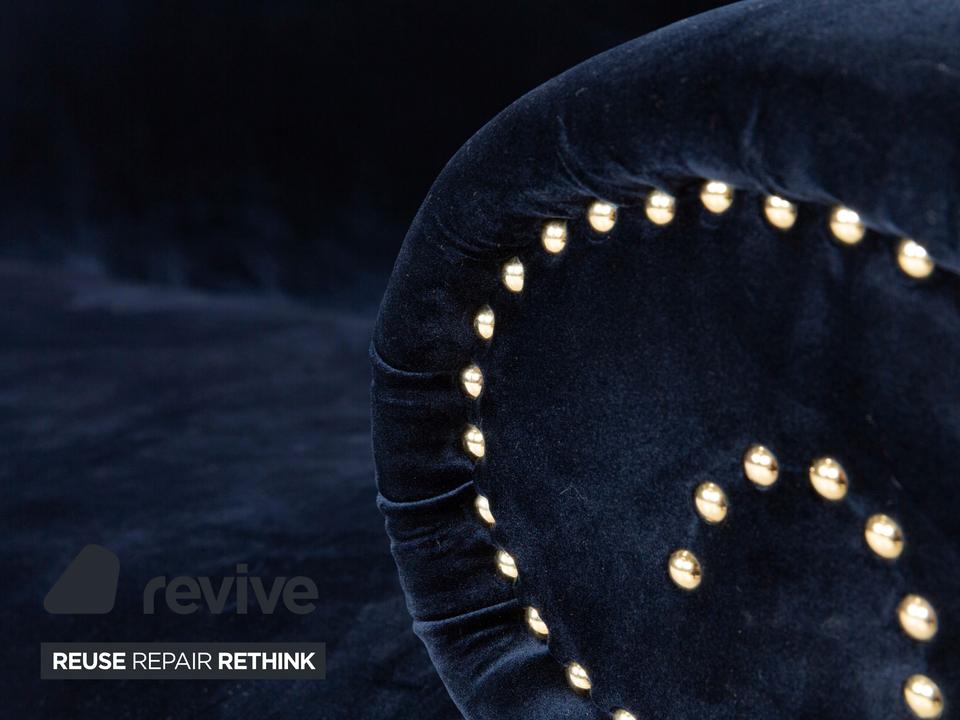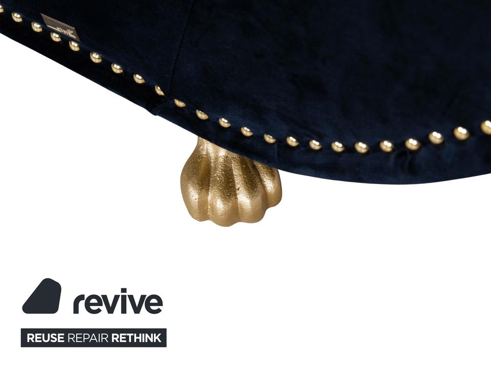 Das Bretz Gaudi Dreisitzer Sofa wirkt edel, was vor allem durch den tiefen Blauton und die goldenen Akzente, geprägt wird. Der hochwertige Stoff sorgt für eine entspannte Optik und maximalen Komfort. Ein perfektes Sofa für ein edles Zimmer.