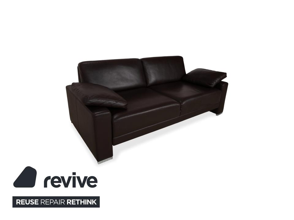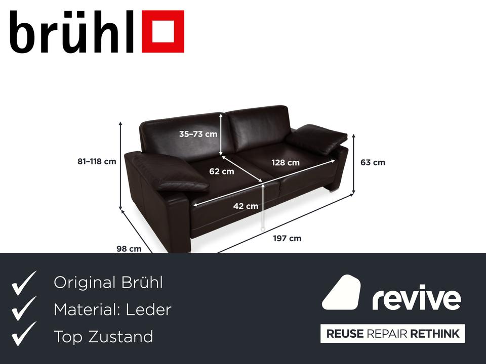 Hier bekommst du mit dem Brühl Alba einen echten Klassiker des modernen Designs, der durch seine Wandlungsfähigkeit und die erstklassige Materialqualität besticht. Das braune Dickleder verleiht dem Dreisitzer eine unglaublich wertige und robuste Haptik, die über Jahre hinweg ihre Schönheit behält und eine tolle Patina entwickelt. Die Kombination aus dem warmen Leder und den kühlen, glänzenden Chromfüßen sorgt für eine zeitlose Eleganz, die in jedem Wohnzimmer für eine souveräne Ausstrahlung sorgt.Das Alba-Modell ist bekannt für seinen exzellenten Sitzkomfort, der hier durch die zusätzliche Kopfstütze noch einmal auf ein neues Level gehoben wird. So kannst du dich entspannt zurücklehnen, während dein Nacken optimal gestützt wird. Das Design bleibt dabei angenehm geradlinig und klar, was typisch für die Formsprache von Brühl ist – eben ein echtes Stück Handwerkskunst „Made in Germany“, das auf Langlebigkeit und ehrliche Materialien setzt. Es ist die perfekte Wahl für dich, wenn du ein Sofa suchst, das handfeste Qualität mit einer leichten, modernen Optik verbindet.