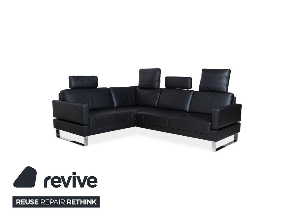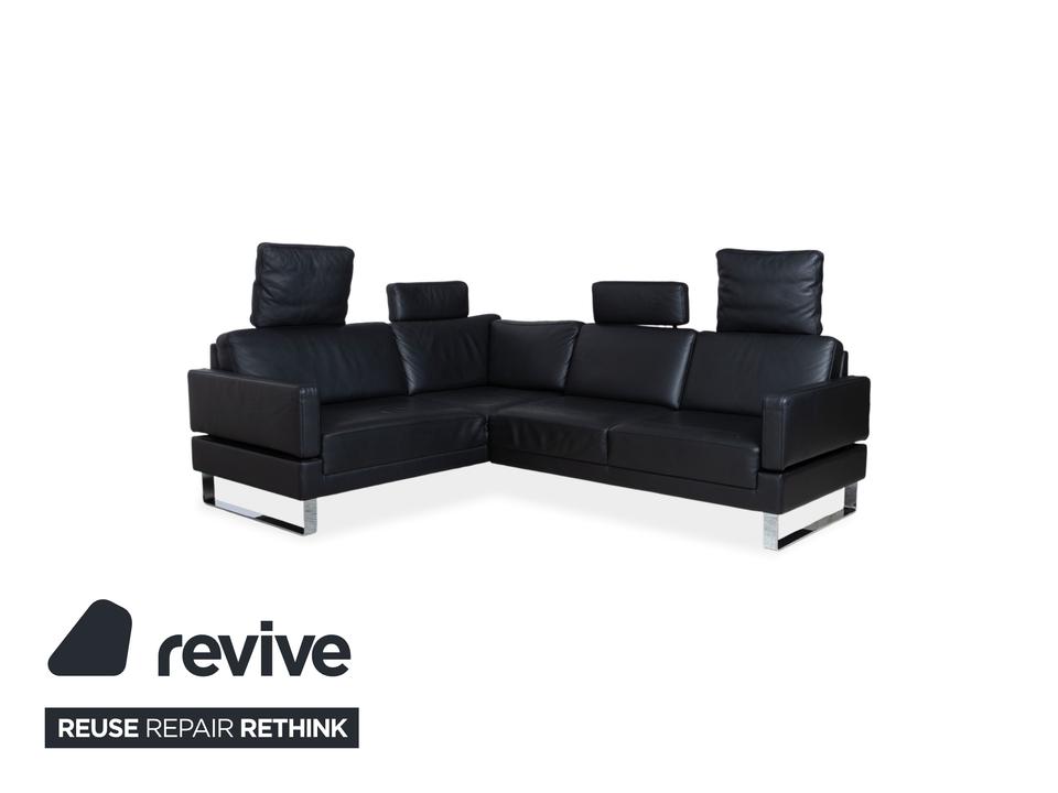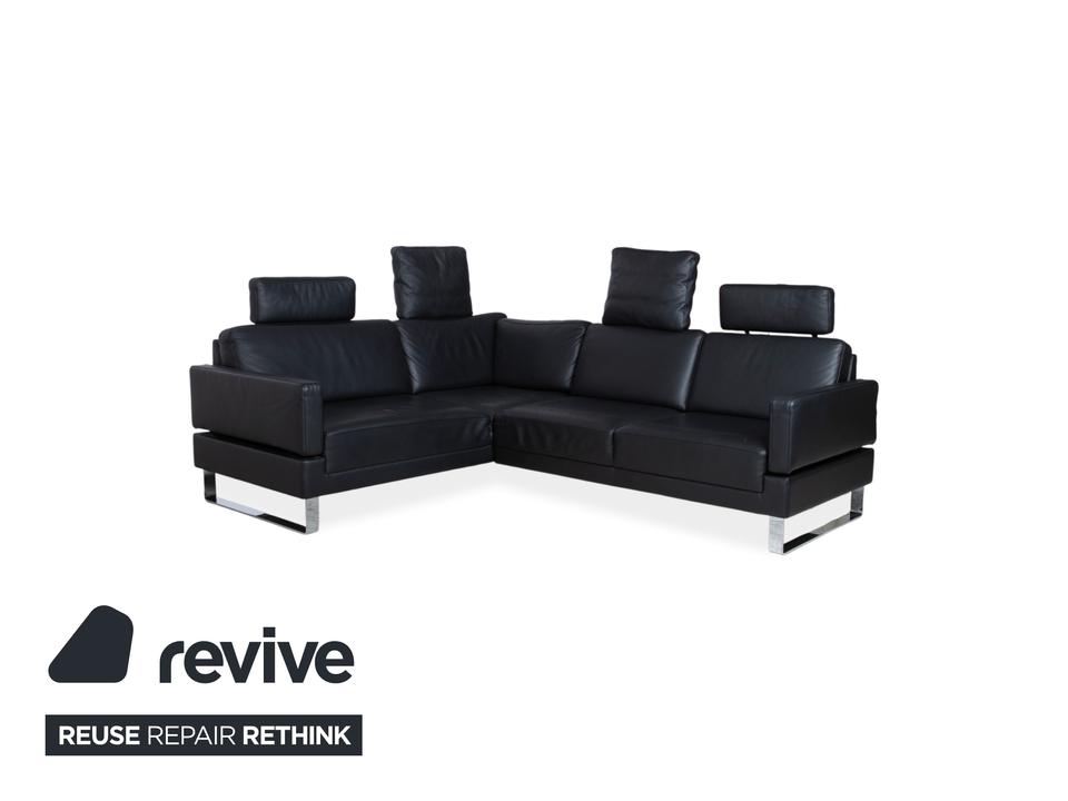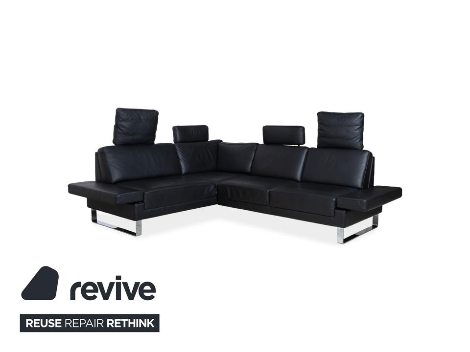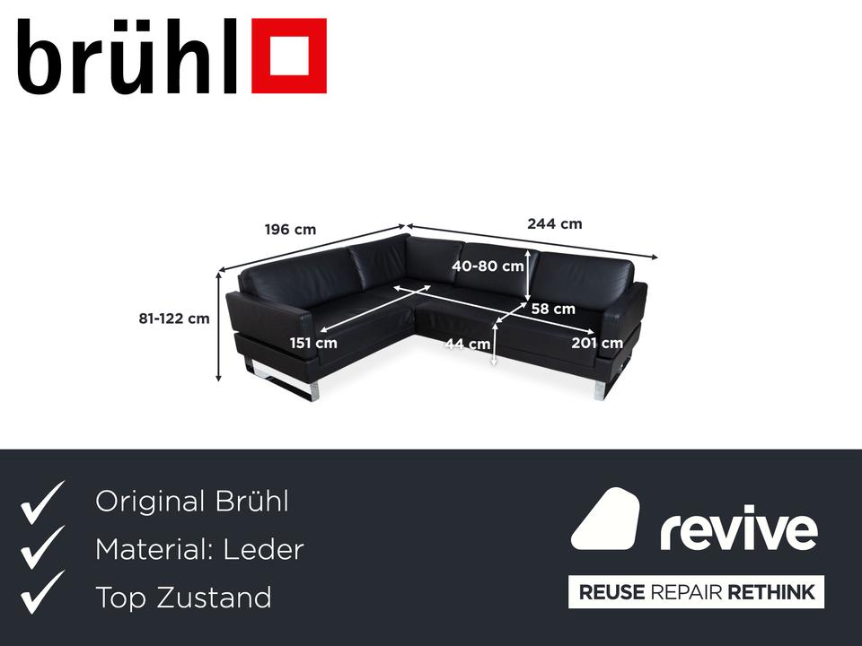 Dieses Walter Knoll Prime Time Ecksofa ist die ideale Lösung, wenn Du ein großzügiges Möbel suchst, das trotz seiner beachtlichen Maße eine angenehme visuelle Leichtigkeit behält. Das Design lebt von den filigranen Metallkufen in Silber, die den schwarzen Lederkorpus fast über dem Boden schweben lassen. Mit seiner klaren L-Form nutzt Du den vorhandenen Platz perfekt aus und schaffst eine strukturierte Wohnlandschaft in Deinem Wohnzimmer.Die Kombination aus dem tiefen Korpus und den lose aufgelegten Rückenkissen sorgt für einen entspannten Look, der niemals steif wirkt. Das schwarze Leder unterstreicht die Wertigkeit der deutschen Manufaktur Walter Knoll und erweist sich im Alltag als äußerst dankbar und robust. Durch die schmale Armlehne wird keine Fläche verschwendet, sodass Dir die maximale Sitz- und Liegefläche für gesellige Runden oder ruhige Abende zur Verfügung steht.Die manuelle Funktion des Modells Alba von Brühl ermöglicht eine flexible Anpassung der Sitzposition durch integrierte Rastermechaniken in den Rücken- und Armlehnen. Durch einfaches Hochziehen oder Umklappen der Polster kannst du die Lehnenhöhe individuell variieren und das Sofa von einer loungigen Optik in einen komfortablen Hochlehner verwandeln. Ebenso Lassen sich die Armlehnen herunterklappen, um so noch mehr Sitzfläche zu gewinnen.