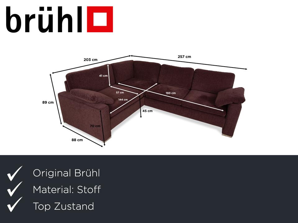 Das Brühl Alba Ecksofa erstrahlt mit einem dunkelroten Farbton, welcher sofort eine komfortable Atmosphäre erschafft. Mindestens genauso für Komfort sorgt der hochwertige Stoff, aus dem die Couch gefertigt ist. Ein echtes Prachtstück welches Brühl hier geschaffen hat.