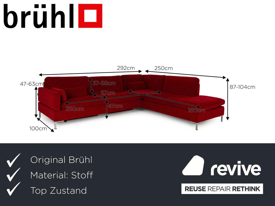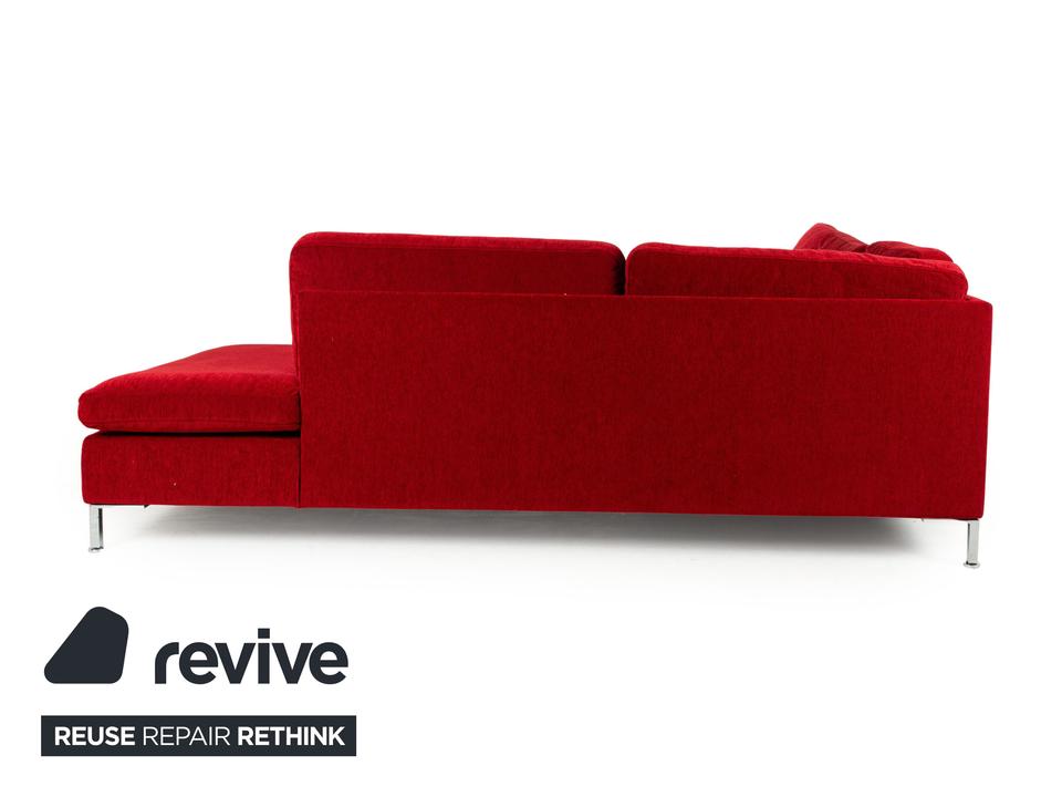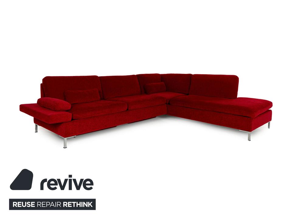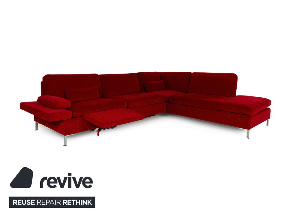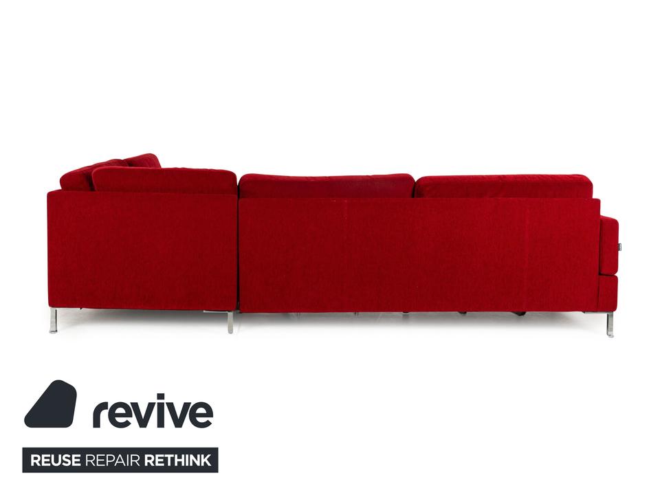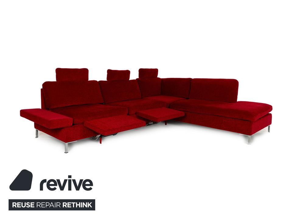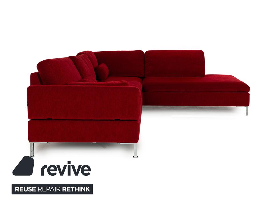 Das Alba Sofa von Brühl ist mit einem roten Stoff bezogen und steht auf Metallfüßen. Es überzeugt mit verschiedenen Verstellmöglichkeiten und einem zeitlosen Design.
