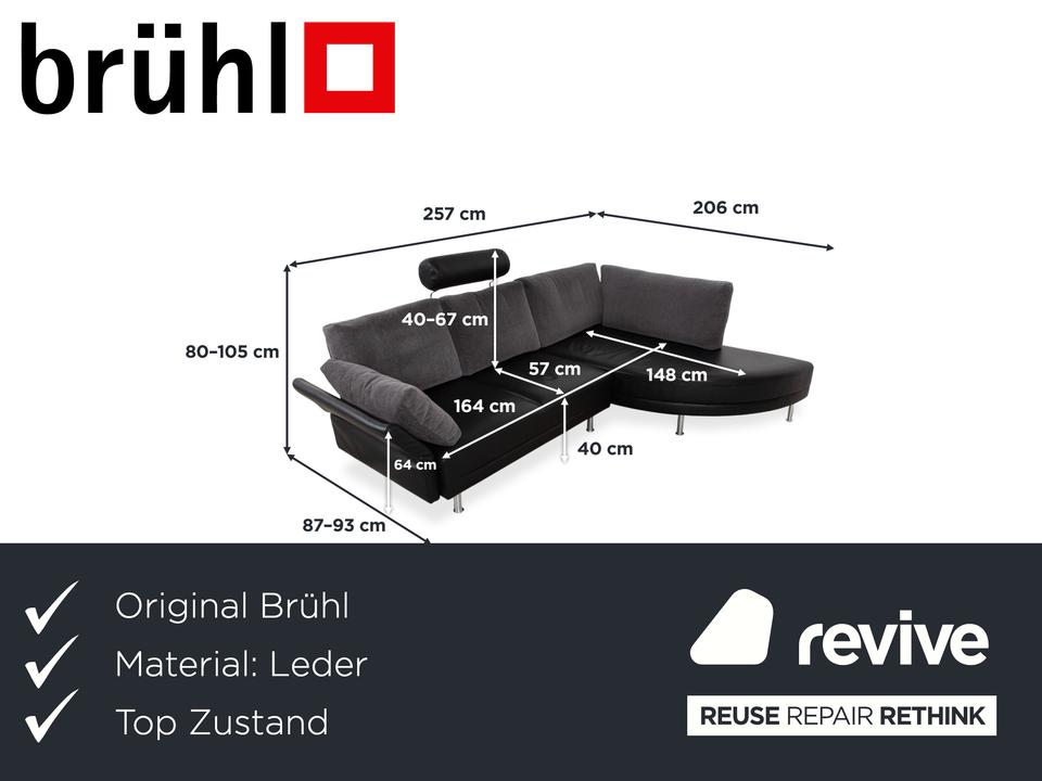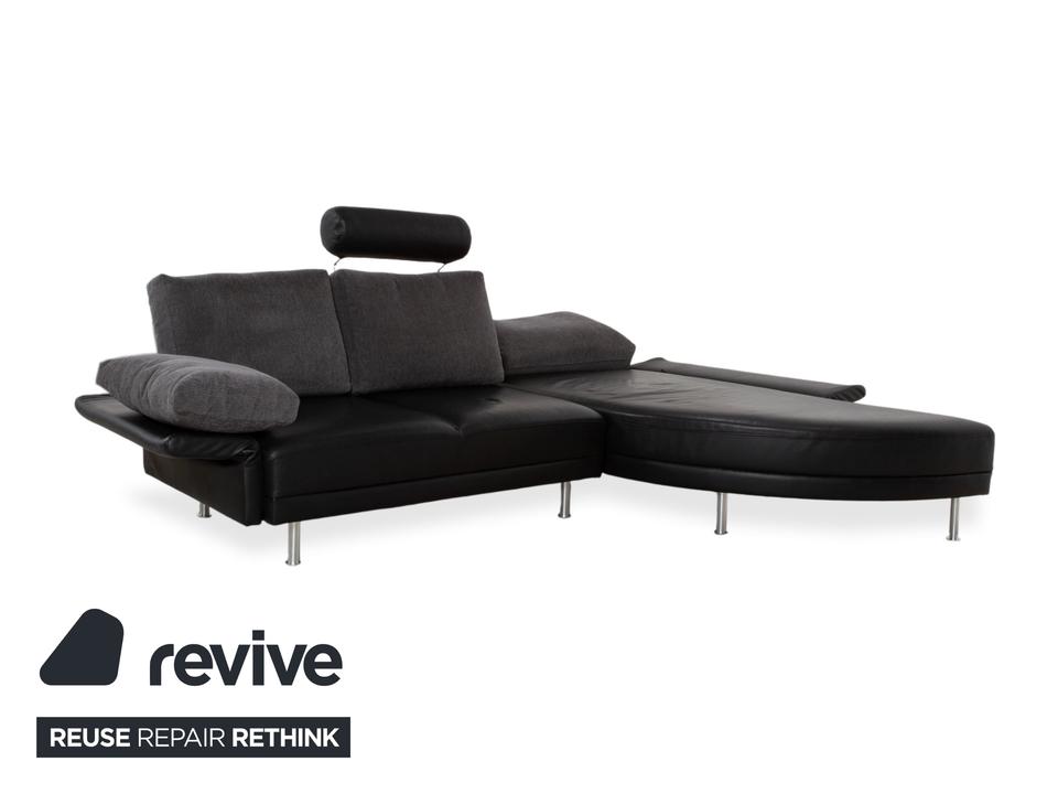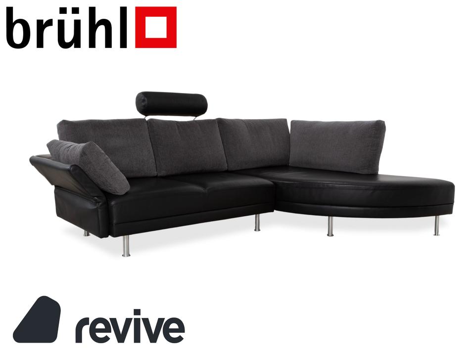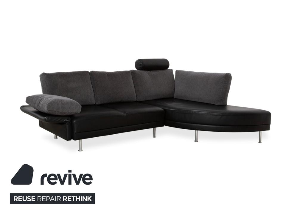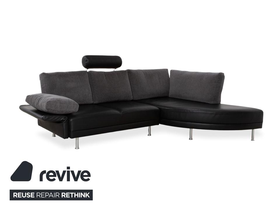 Brühl Divanetta Stoff Leder Ecksofa Schwarz Grau Sofa Couch