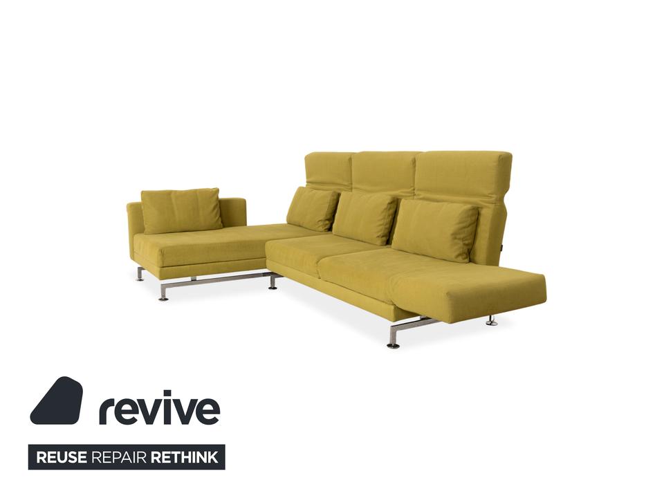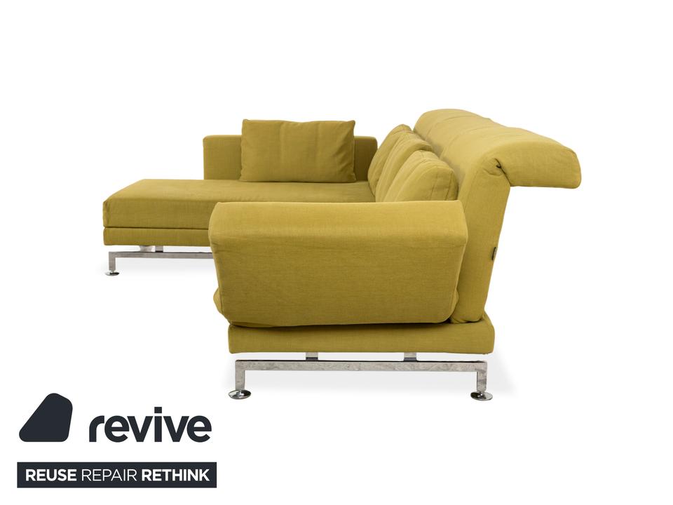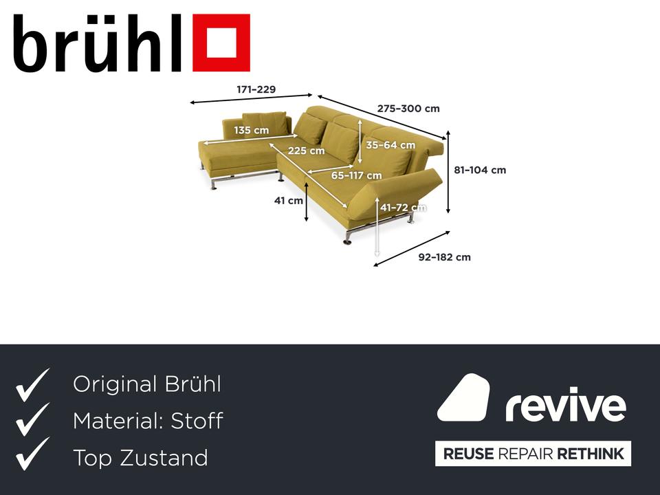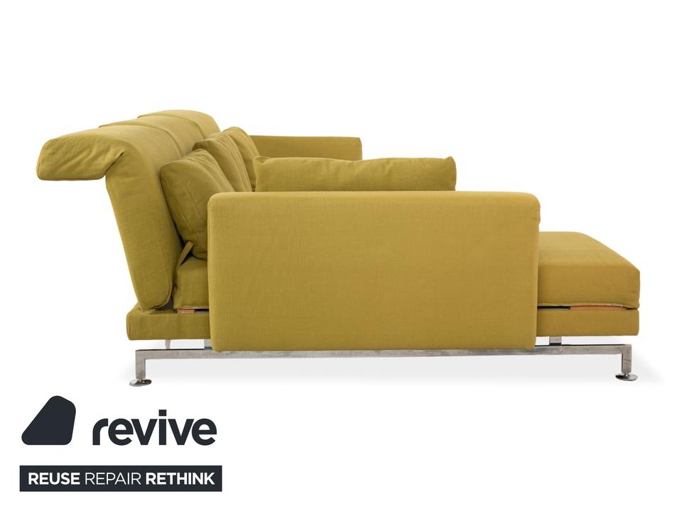 Entworfen wurde das Moule vom deutschen Hersteller Brühl von Roland Meyer-Brühl, der mit dem Entwurf einen echten Klassiker des deutschen Möbeldesigns geschaffen hat. Wir sind fasziniert von dieser extremen Vielseitigkeit und damit nicht alleine: Das Design wurde bereits mit dem renommierten Red Dot Design Award ausgezeichnet. In dieser Ausführung ist außerdem die Farbe echt ein Blickfang: Ein vitalisierendes, leuchtendes Grün-Gelb, das sofort Energie und eine frische Atmosphäre in jeden Raum bringt. Dieser mutige, selbstbewusste Farbton macht die Couch zum unumstrittenen Centerpiece des Raumes. Die innovative Technik unter dem Stoff ist das Herzstück des Mouls: Durch eine raffinierte Mechanik lassen sich die Rücken- und Kopflehnen einzeln verstellen, um dir in jeder Sitzposition den besten Halt zu geben. Das Highlight ist die Schwenkfunktion: Die Armlehnen lassen sich flach abklappen und um 90 Grad nach vorne drehen, wodurch das Sofa im Handumdrehen in eine großzügige Liegefläche für entspannte Abende verwandelt wird.