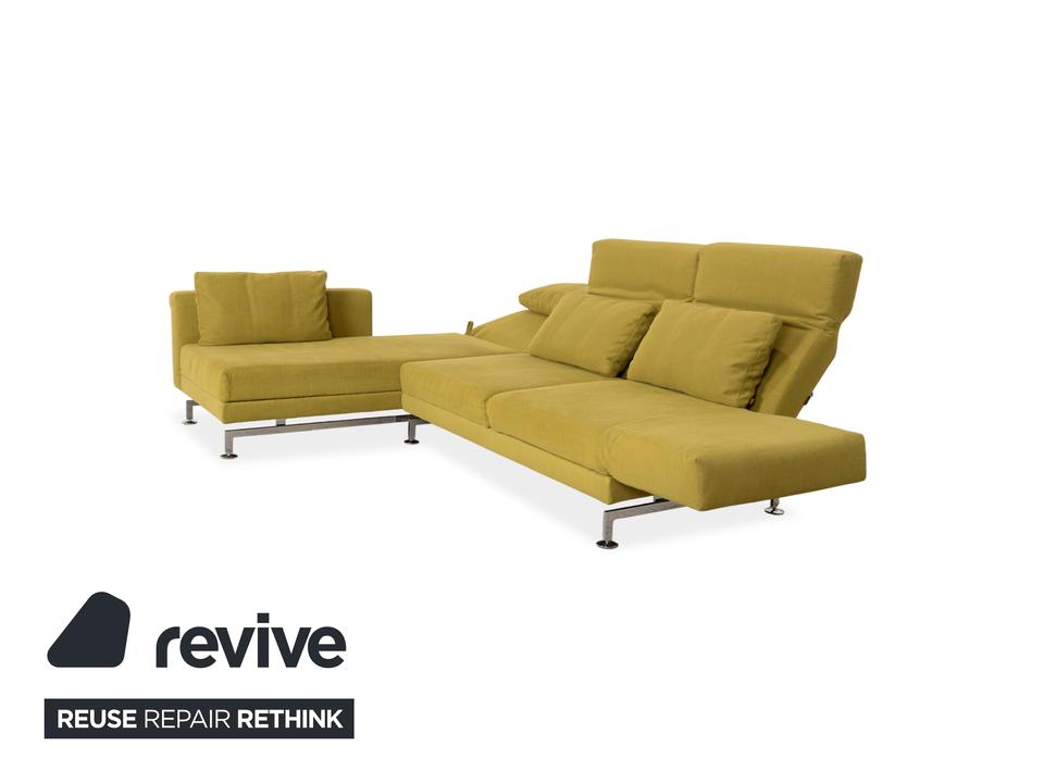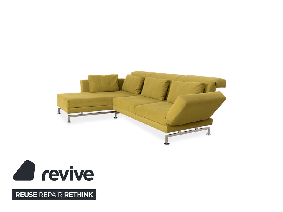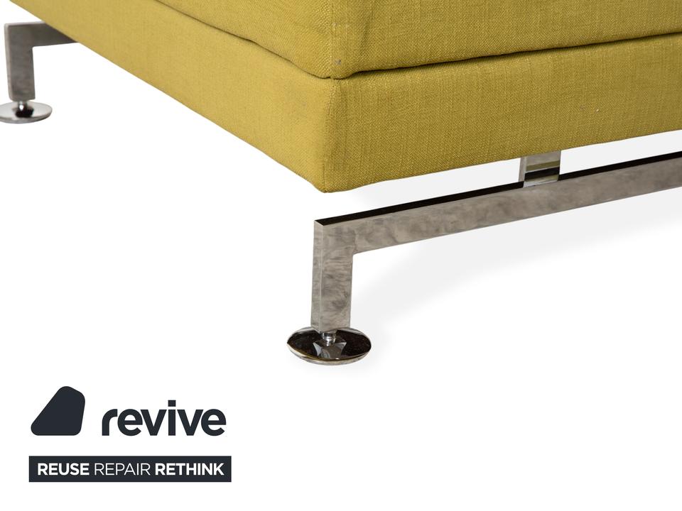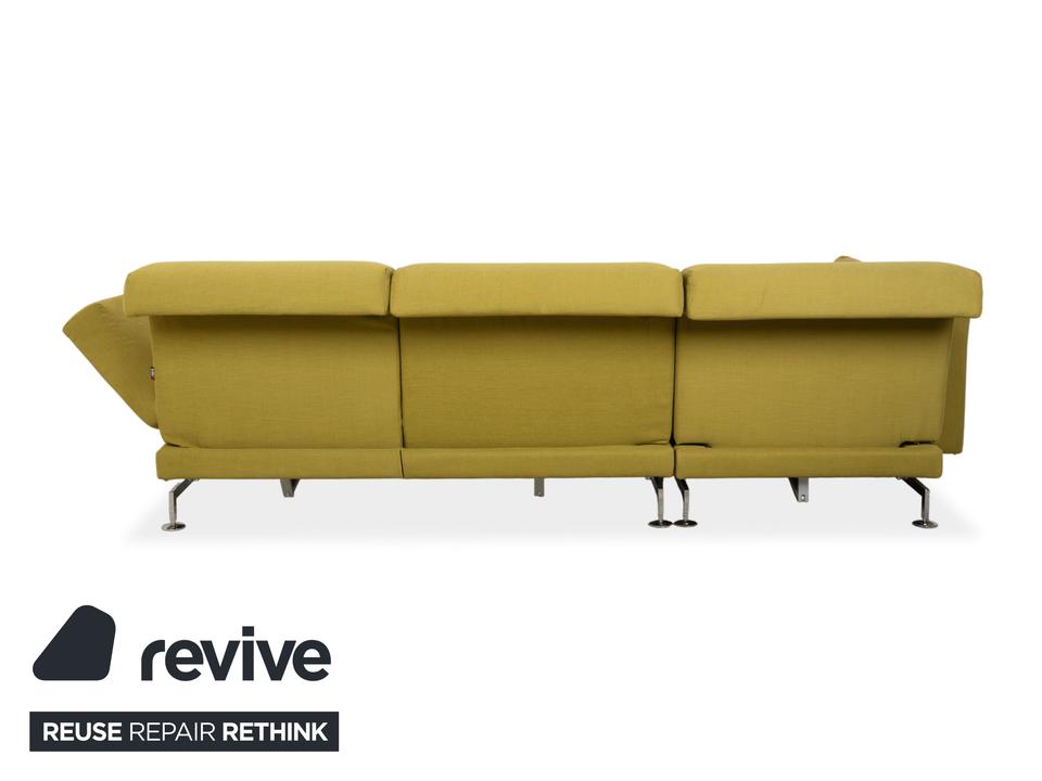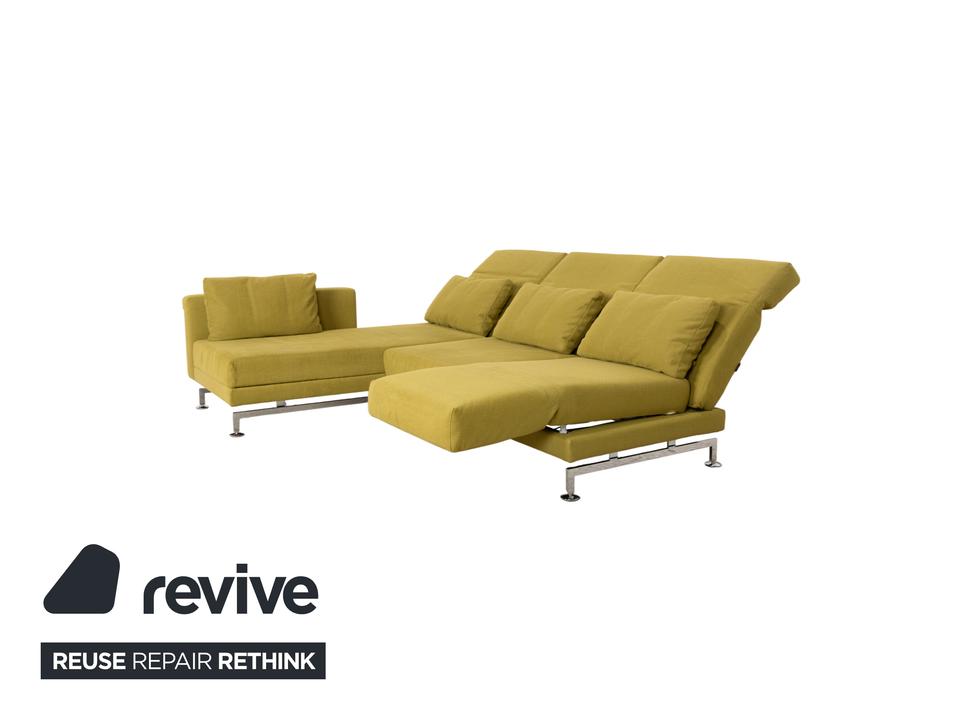 Entworfen wurde das Moule vom deutschen Hersteller Brühl von Roland Meyer-Brühl, der mit dem Entwurf einen echten Klassiker des deutschen Möbeldesigns geschaffen hat. Wir sind fasziniert von dieser extremen Vielseitigkeit und damit nicht alleine: Das Design wurde bereits mit dem renommierten Red Dot Design Award ausgezeichnet. In dieser Ausführung ist außerdem die Farbe echt ein Blickfang: Ein vitalisierendes, leuchtendes Grün-Gelb, das sofort Energie und eine frische Atmosphäre in jeden Raum bringt. Dieser mutige, selbstbewusste Farbton macht die Couch zum unumstrittenen Centerpiece des Raumes. Die innovative Technik unter dem Stoff ist das Herzstück des Mouls: Durch eine raffinierte Mechanik lassen sich die Rücken- und Kopflehnen einzeln verstellen, um dir in jeder Sitzposition den besten Halt zu geben. Das Highlight ist die Schwenkfunktion: Die Armlehnen lassen sich flach abklappen und um 90 Grad nach vorne drehen, wodurch das Sofa im Handumdrehen in eine großzügige Liegefläche für entspannte Abende verwandelt wird.