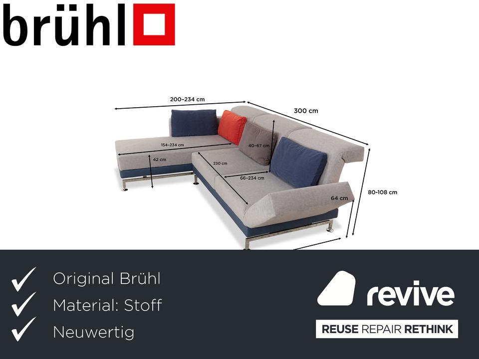 Das Brühl Moule Ecksofa bietet nicht nur einen stilvollen Look, sondern auch eine Vielzahl an Verstellungsmöglichkeiten. So können Arm- und Rückenlehnen angepasst und die Couch beispielsweise zu einem Schlafsofa umgewandelt werden. Zudem verfügt es über einen Neubezug, wodurch Langlebigkeit gewährt ist.