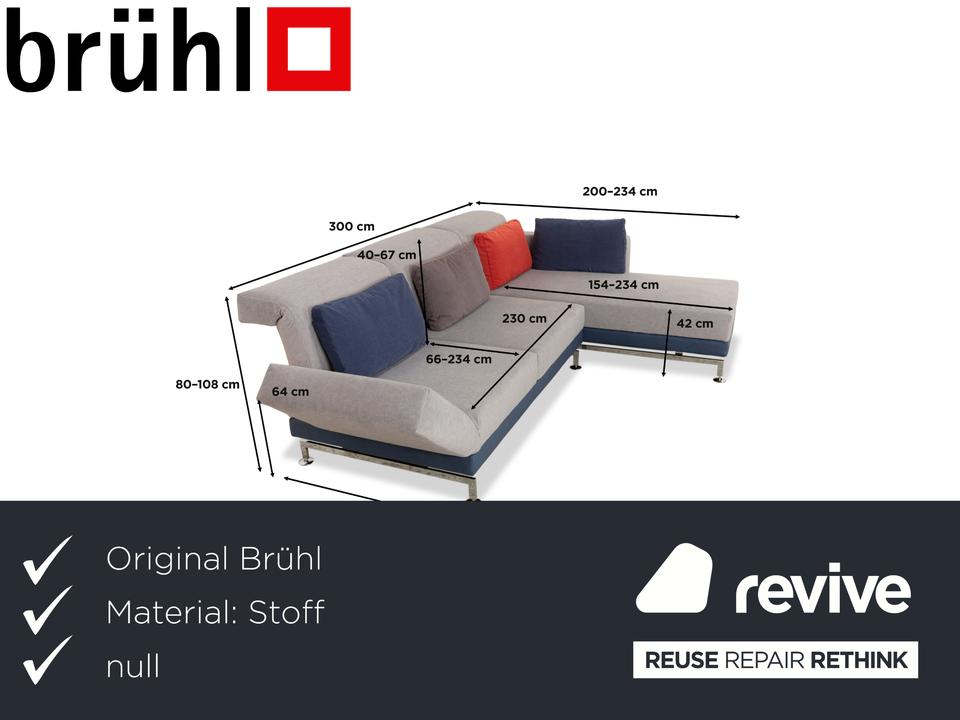 Das Brühl Moule Ecksofa bietet nicht nur einen stilvollen Look, sondern auch eine Vielzahl an Verstellungsmöglichkeiten. So können Arm- und Rückenlehnen angepasst und die Couch beispielsweise zu einem Schlafsofa umgewandelt werden. Zudem verfügt es über einen Neubezug, wodurch Langlebigkeit gewährt ist.