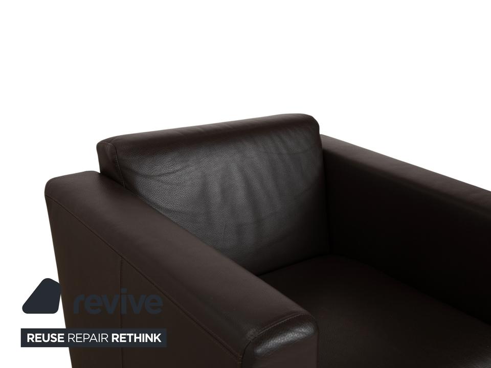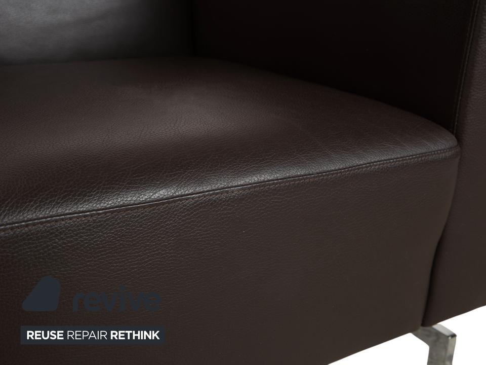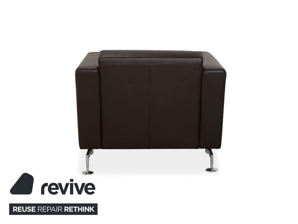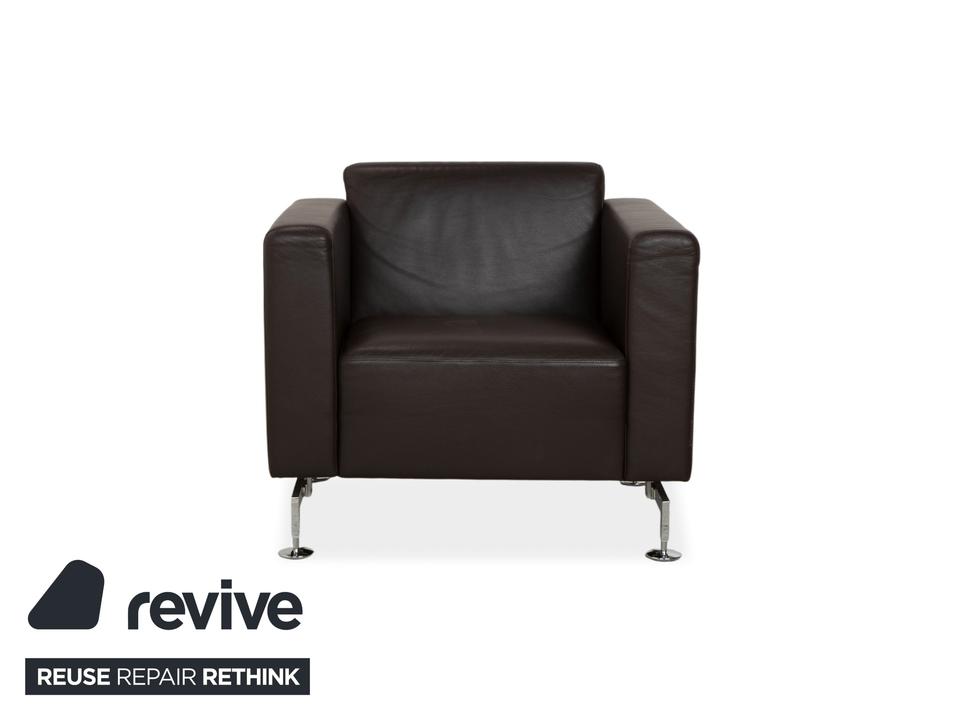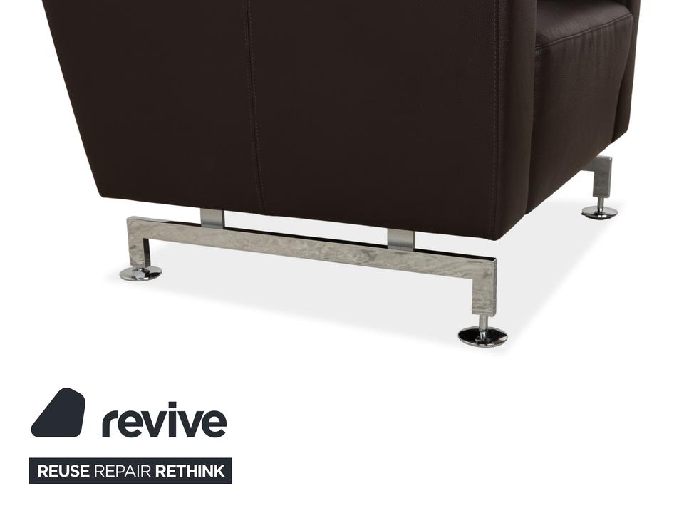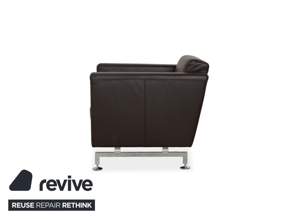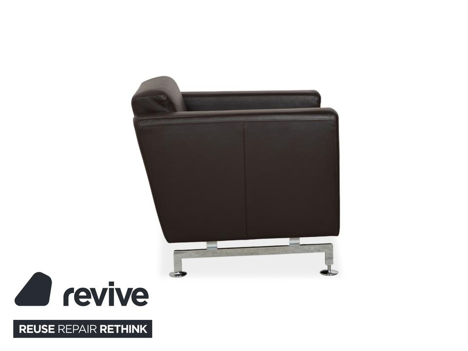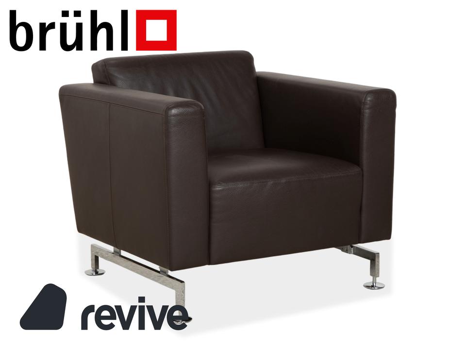 Der Sessel Serge der oberfränkischen Design-Manufaktur Brühl besticht durch seine kubische Klarheit und eine außergewöhnliche Materialpräsenz. In einem tiefen, warmen Braunton gehalten, verleiht das hochwertige Echtleder dem Möbelstück eine markante und zugleich behagliche Ausstrahlung. Die geschlossene Formgebung mit den hohen, durchgehenden Armlehnen sorgt für ein Gefühl von Geborgenheit und macht den Sessel zu einem idealen Rückzugsort für konzentriertes Arbeiten oder entspannte Lesestunden.Die erstklassige handwerkliche Verarbeitung wird in der präzisen Linienführung und der straffen Polsterung spürbar, die einen hervorragenden Sitzkomfort garantiert. Einen modernen, industriellen Akzent setzt das filigrane Untergestell aus verchromtem Metall, das dem massiven Korpus eine angenehme visuelle Leichtigkeit verleiht. Mit dem Brühl Serge entscheiden Sie sich für ein langlebiges Solitärmöbel, das nachhaltige Qualität und minimalistische Ästhetik perfekt miteinander verbindet.