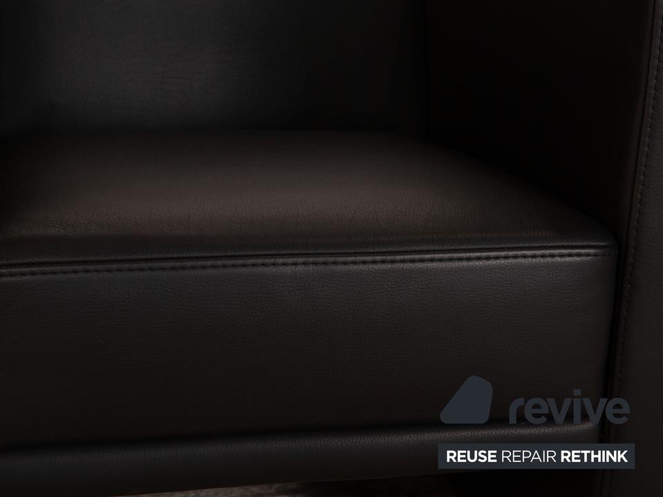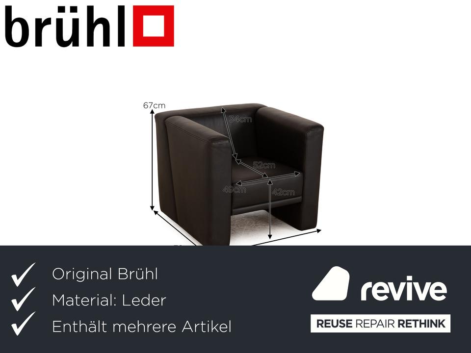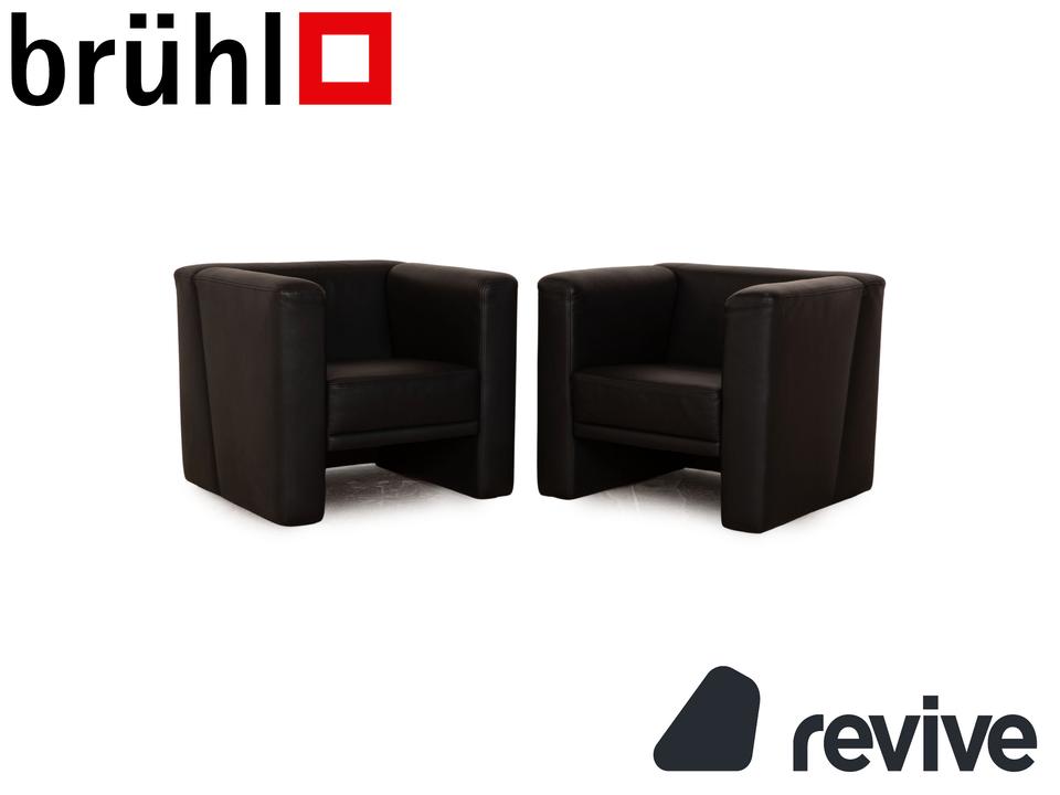Die Visavis Sessel Garnitur von Brühl ist mit einem schwarzen Echtleder bezogen und steht auf bodentiefen Seitenteilen. Das minimalistische, zeitlose Design zeichnet sie aus.