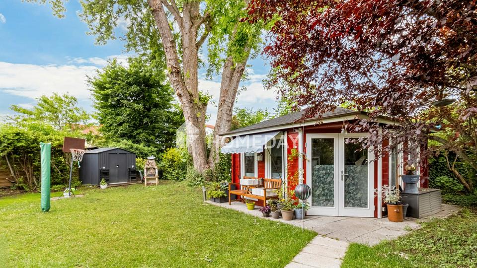 Der Garten ist ein echtes Highlight: Mit altem Baumbestand, einer großen Terrasse und einem stilvollen Pavillon bietet er viel Platz für Erholung, Spiel und gesellige Stunden im Freien. Die ruhige Lage in einer wenig befahrenen Seitenstraße unterstreicht die besondere Wohnqualität dieses Anwesens.